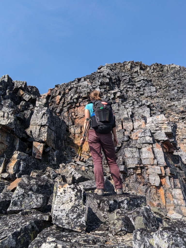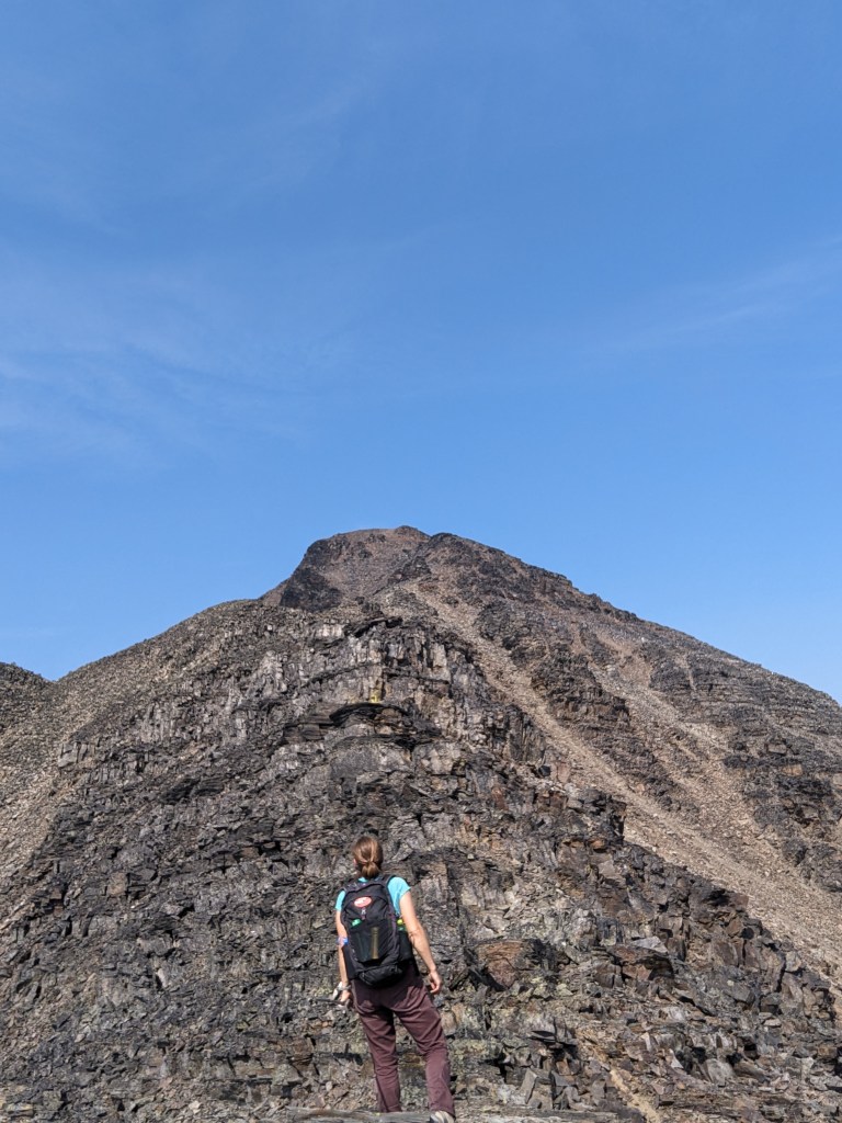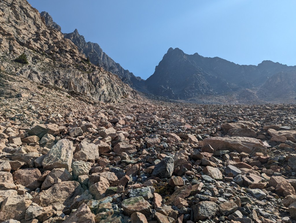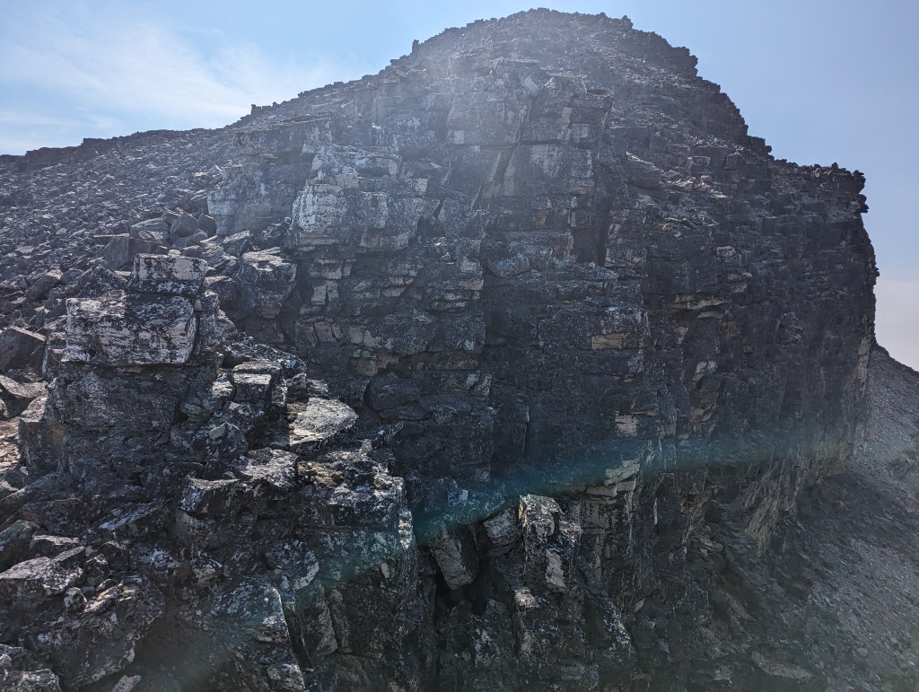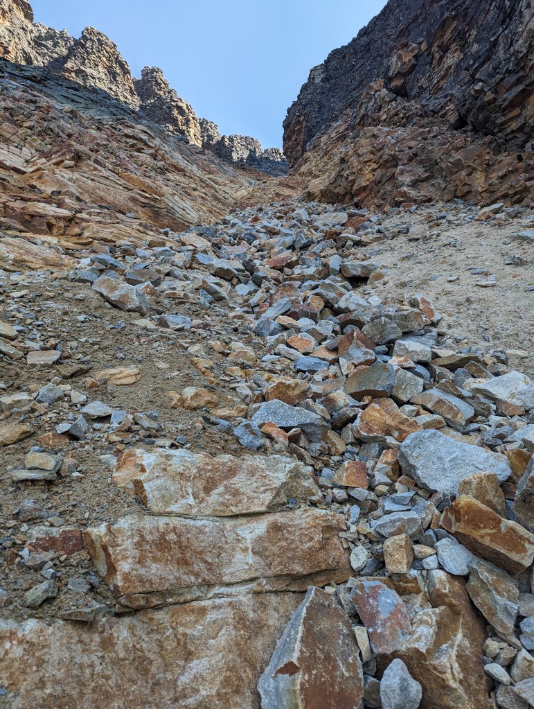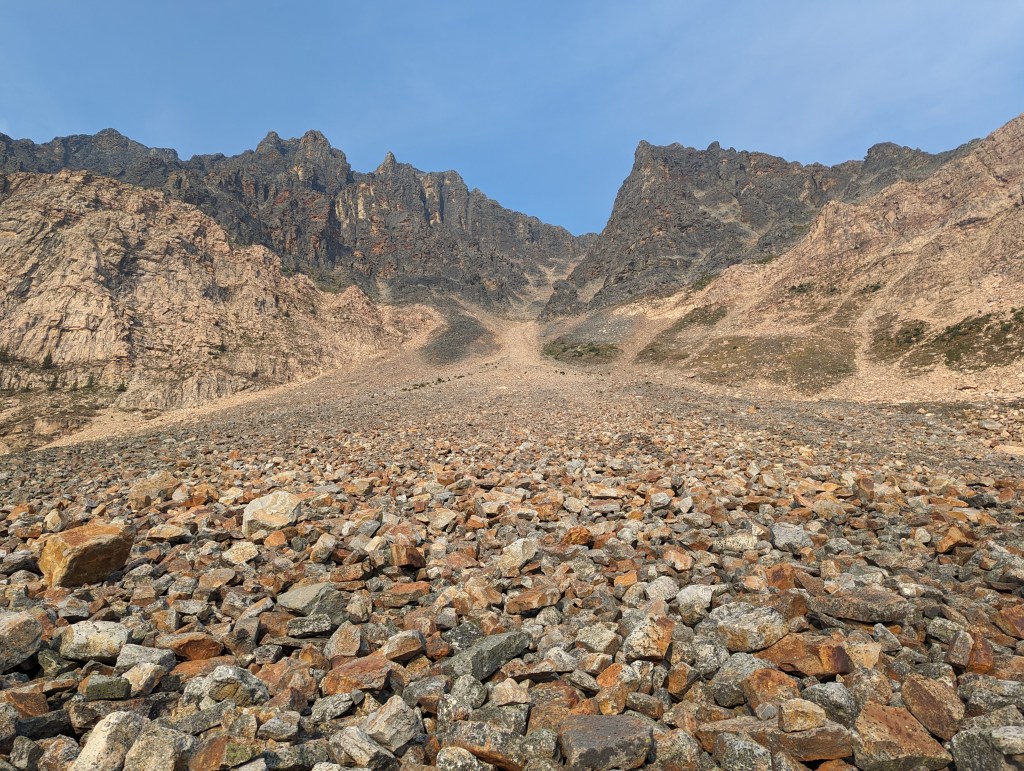 The trailhead was easy to find. Exercise caution when crossing the highway.A grouse welcomed me at the start of the day. The trail is easy up to the first campground.The first campsite at Rockingham Creek was reached in under two hours. It looks to have had recent improvements, including new tent pads.The charming campsite at Rockingham creek has a communal food area along the creek complete with fire pit and bear bin.Continuing across Rockingham Creek before turning right and beginning to bushwhack South along the creek requires crossing this bridge. It held me.The trees along the creek are fairly thin. But, everything in this section is wet and swampy. My pants were quickly saturated in the cool morning dew. Thankfully the inside of my hiking boots stayed dry. It’s worth noting that there had been no rain in the week prior and, overall, the summer was a dry one. I suspect this area is only dry when frozen.After a little over a kilometer of bushwhacking I arrived at a tributary to Rockingham Creek. I was not wearing my Gore-Tex boots and was not keen to have wet feet all day. Heading into the trees to look for an easy crossing, I eventually gave up on the wetland completely and instead hiked up the slope early, angling up towards the rock clearing visible in this photo.Finally reaching the rock clearing, the warm sun felt amazing on my cold, wet clothes. I lingered here for a snack break, kept company by many talkative pikas.The slope above the wetland is mossy and progress was easy. I continued angling up and right, soon reaching a rocky drainage. I followed the drainage up until I was above treeline.From above treeline, the wetland surrounding Rockingham Creek is obvious. The directions from the book would have had me following the creek for another kilometer. Across the valley, to the right, is Yellowhead Mountain. Below it are Yellowhead Lake and the boat launch where the day started.Side-hilling was required due to my route choice, but most of the rock was fairly stable. Traversing across two gullies slowed me down a bit, but I finally reached the correct gully – easily recognizable by its likeness to the gates of Mordor. The lower part of Fitzwilliam is a stable light-coloured rock. But, the upper part is miserable, rotten black rock.The loose rock in the gully can mostly be avoided by scrambling along the left side on solid rock. If traveling with others a helmet is strongly recommended here. Though the solid rock is recommended, take care. Maybe it was fatigue, but I got sloppy and fell here – only two feet, but even short falls can end the day if unlucky.Finally nearing the top of the gully and the Fitzwilliam-Bucephalus col.Yep.Looking South from the col to Bucephalus. I would tackle Fitzwilliam before coming back to Bucephalus.Looking North from the col towards Fitzwilliam.Beginning along the ridge to Fitzwilliam on rotten black rock. This peak is not overly popular, so the majority of loose holds are still there to discover. Feet tend to roll out from under you and no handhold can be trusted.Studying my choss-pile of route options.Nearing the summit of Fitzwilliam.The summit is wide enough to camp on, as garbage strewn indicates. There was no register.One last Look over Fitzwilliam Basin and further to Roche Noir (Center) before returning to the col.Once past the col and on the way up Bucephalus the day felt a bit brighter. The rock comprising the ridge of Bucephalus is more stable and the peak is only 45 minutes from the col.From the summit of Bucephalus, looking down over Fitzwilliam Basin. If a hiker were to continue on the proper trail from the first campsite, it would lead to a second campsite in this basin. However, the peak isn’t accessible from there.Fitzwilliam, viewed from the summit of Bucephalus.Roche Noir and other peaks to the East.Looking back along the ridge to the col. The top of the gully is the notch at the right.By this point my tumble in the gully was catching up with me and every step on descent was uncomfortable. I didn’t like the vibe in the gully and didn’t want to further injure myself, knowing the bushwhack was still ahead. Instead I decided to descend the back of Bucephalus on a talus slope, traversing around to meet up with the bottom of the gully. This was the right choice for my ankle, but was a bit longer. If travelling in a large group, this detour could be a good option to mitigate rockfall hazard.Passing back under the gates to Mordor. Note the stark contrast in rock. By this point my ankle was forcing me to limp. I used my InReach to notify that I would be delayed and then trudged on.On descent I took a different rock gully down earlier to easier terrain. This gully went nearly to the valley floor. Avalanches likely open up different paths from year to year. As of 2023 though, this is the easiest path.From the bottom of the gully/slide path, bushwhacking through trees was relatively easy, eventually leading to the same rocky clearing passed earlier in the day. The contrasting rocks on Fitzwilliam are obvious in this photo.