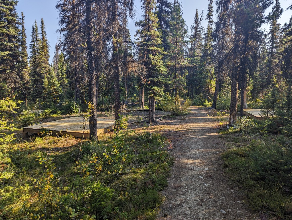 The trailhead starts directly across the road from the sign for the Yellowhead Lake boat launch. There is parking and an outhouse at the boat launch, but you might have to loop around once to find it.