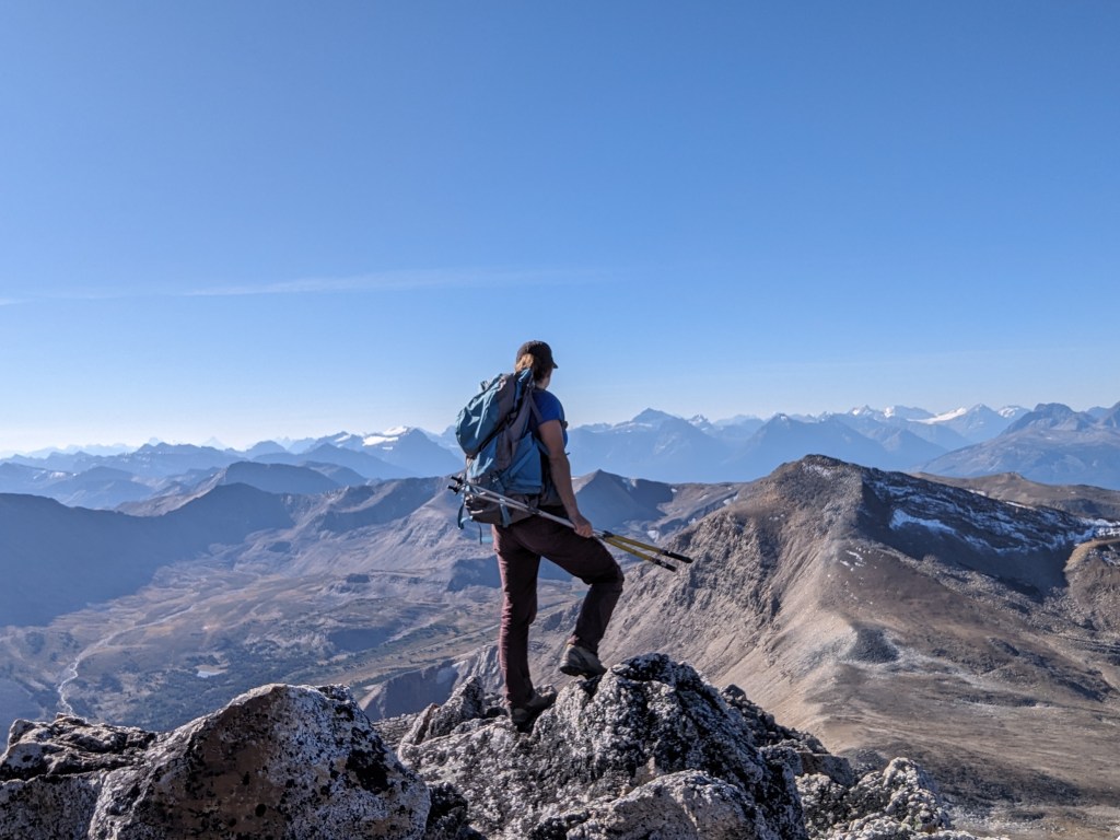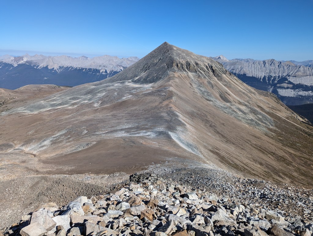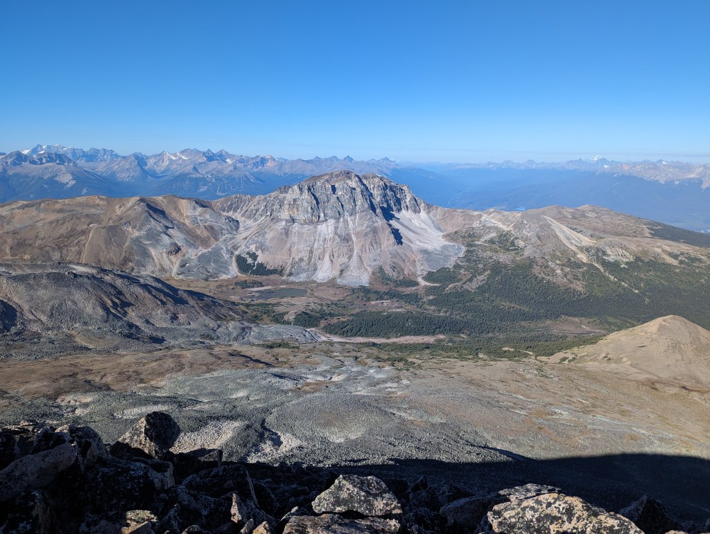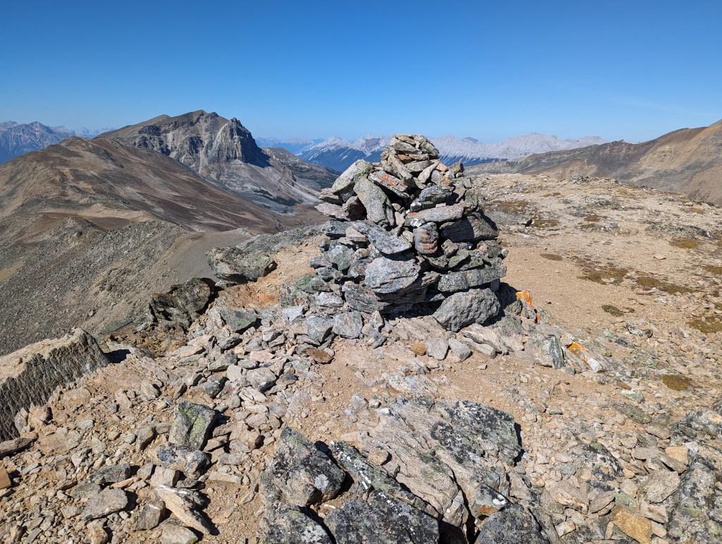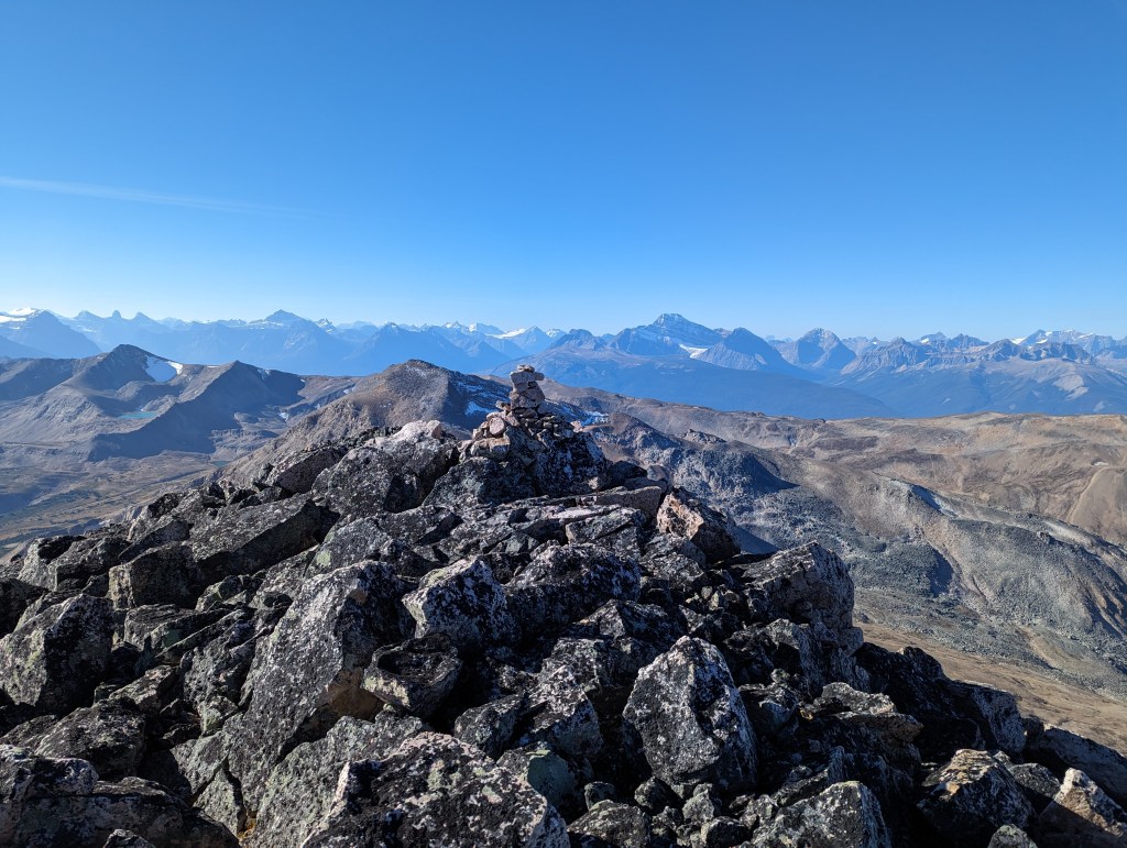 I had backpacked in the previous day in 4 hrs 20 min. The full loop over Excelsior, Centre, and Amber was 8 hrs 30 min and then the backpack out was 2 hrs 40 min (With the help of a bike). I’m grateful for this second experience of Skyline Trail. I backpacked the full trail in two days in July 2020 with Dan and a friend. We passed someone on the trail complaining that they could have just set their treadmill up in the shower and had the same experience – this succinctly captured what it was like. The clouds were so thick and the rain so heavy on that trip that we couldn’t even see Amber Mountain from the trail despite almost walking right over it. This September 2023 trip changed my mind. I now agree that Skyline Trail in Jasper is one of the most beautiful hikes any person can do.