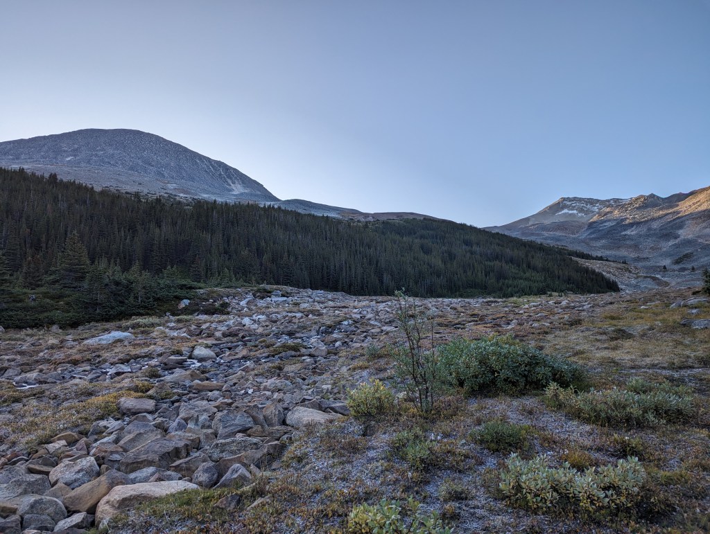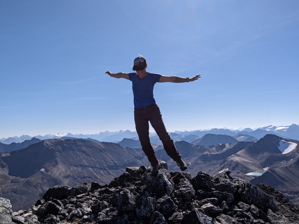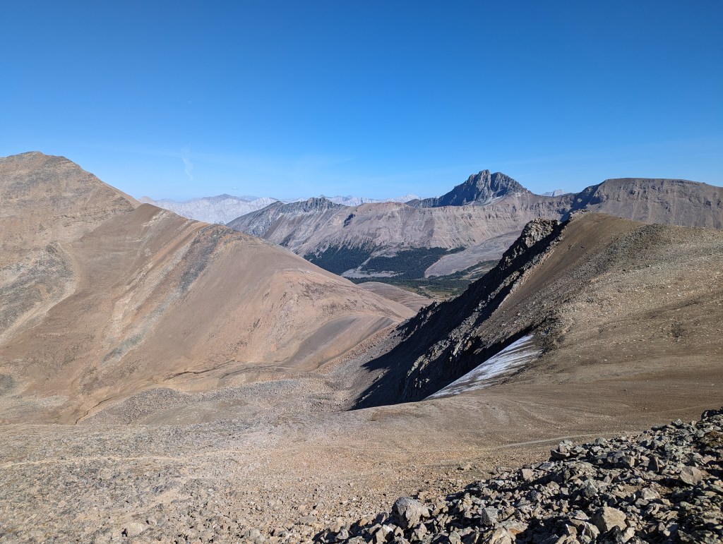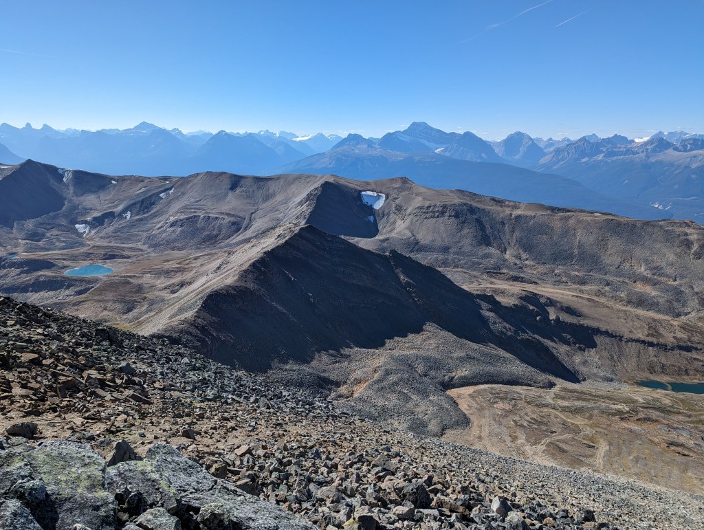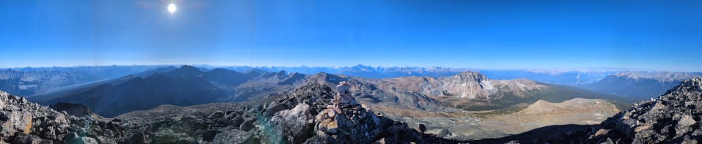 I had backpacked in the previous day in 4 hrs 20 min. The full loop over Excelsior, Centre, and Amber was 8 hrs 30 min and then the backpack out was 2 hrs 40 min (With the help of a bike). I’m grateful for this second experience of Skyline Trail. I backpacked the full trail in two days in July 2020 with Dan and a friend. We passed someone on the trail complaining that they could have just set their treadmill up in the shower and had the same experience – this succinctly captured what it was like. The clouds were so thick and the rain so heavy on that trip that we couldn’t even see Amber Mountain from the trail despite almost walking right over it. This September 2023 trip changed my mind. I now agree that Skyline Trail in Jasper is one of the most beautiful hikes any person can do.
