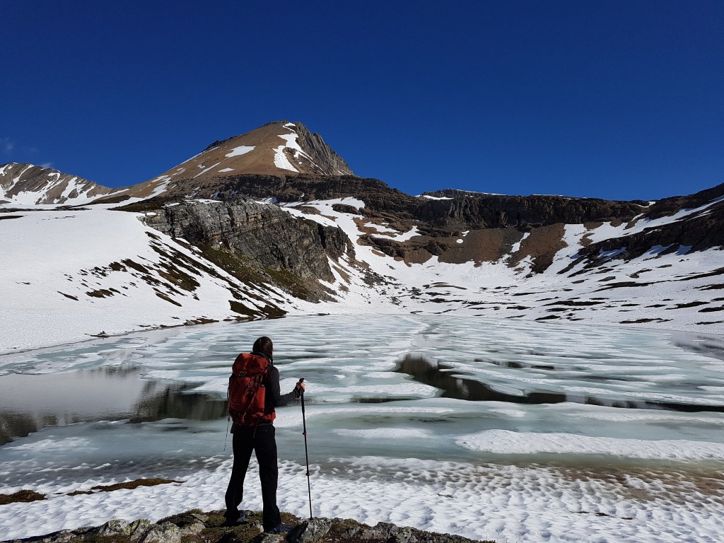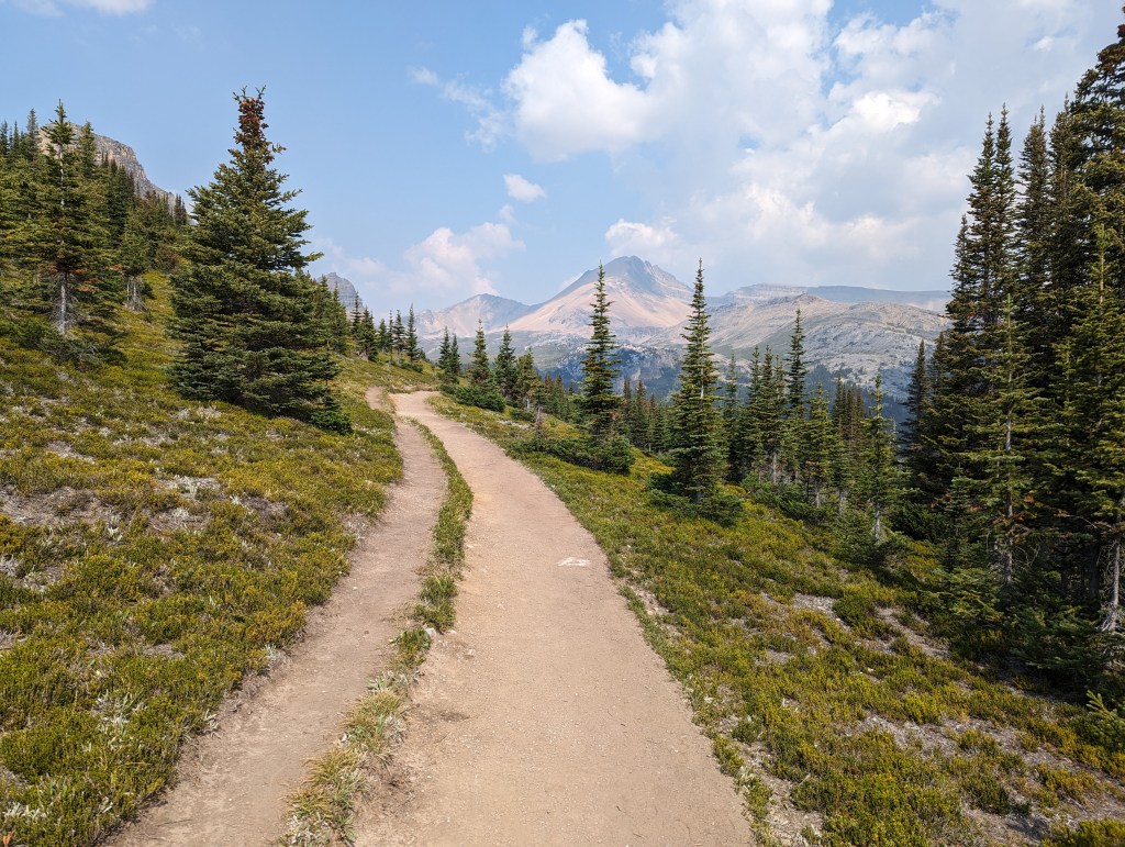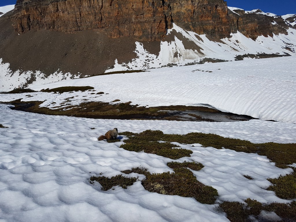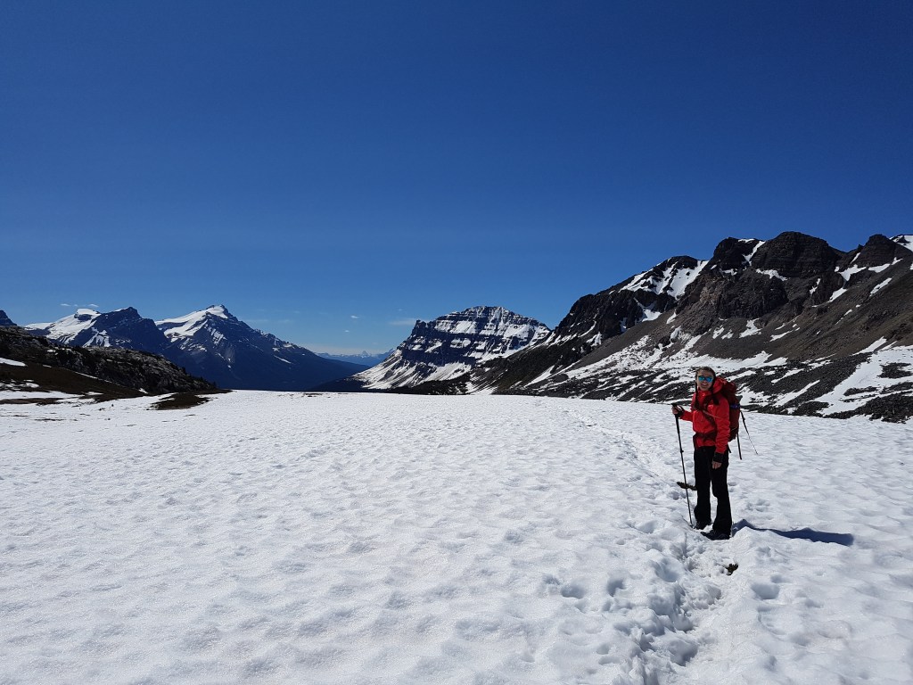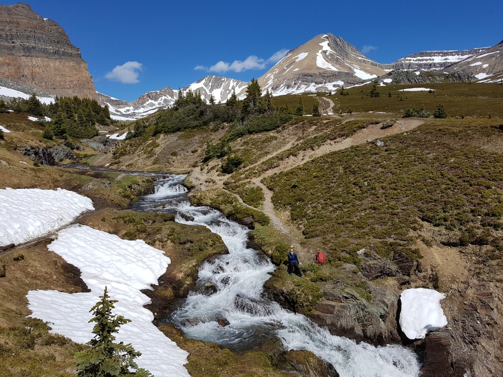 The Icefields Parkway tends to hold snow later into summer. Here are a few photos from a hike to Helen Lake on June 27, 2017 to give an idea of early summer conditions.