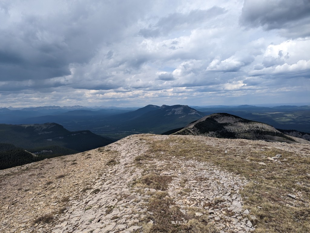 I spotted thunder clouds sweeping across the prairies, heading my way, and made quick time returning to treeline. The heavy rain never hit and I hiked out without issues. Back at the car, I mentioned this to Dan who expressed surprise. A heavy storm had passed directly over where he’d been relaxing a few km from me. Weather in the mountains can truly be unpredictable. My round-trip time was 4 hrs 45 min.