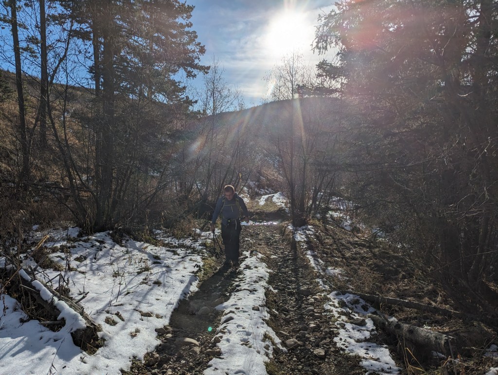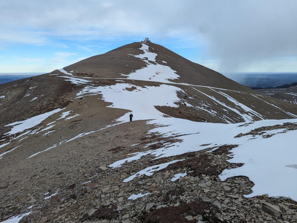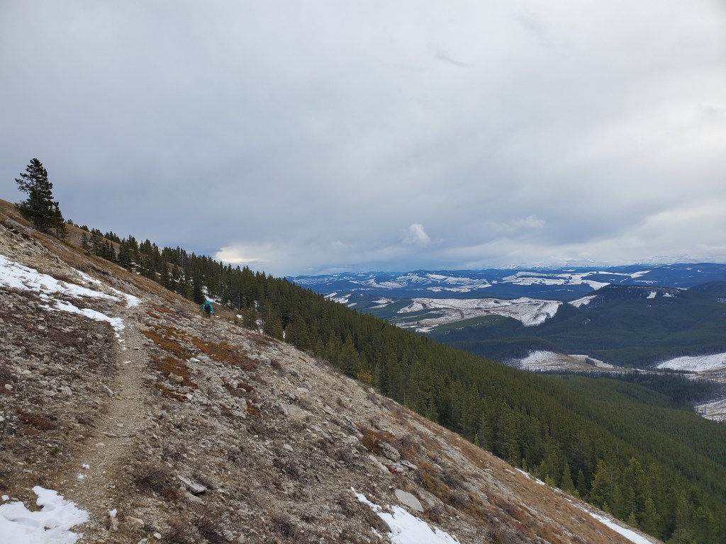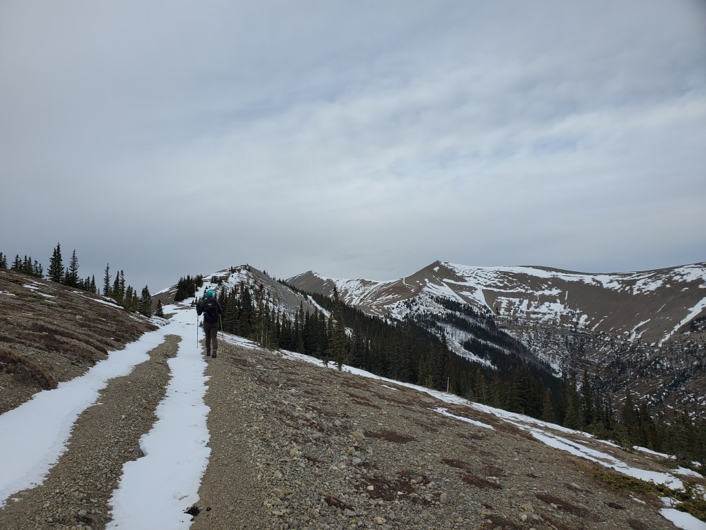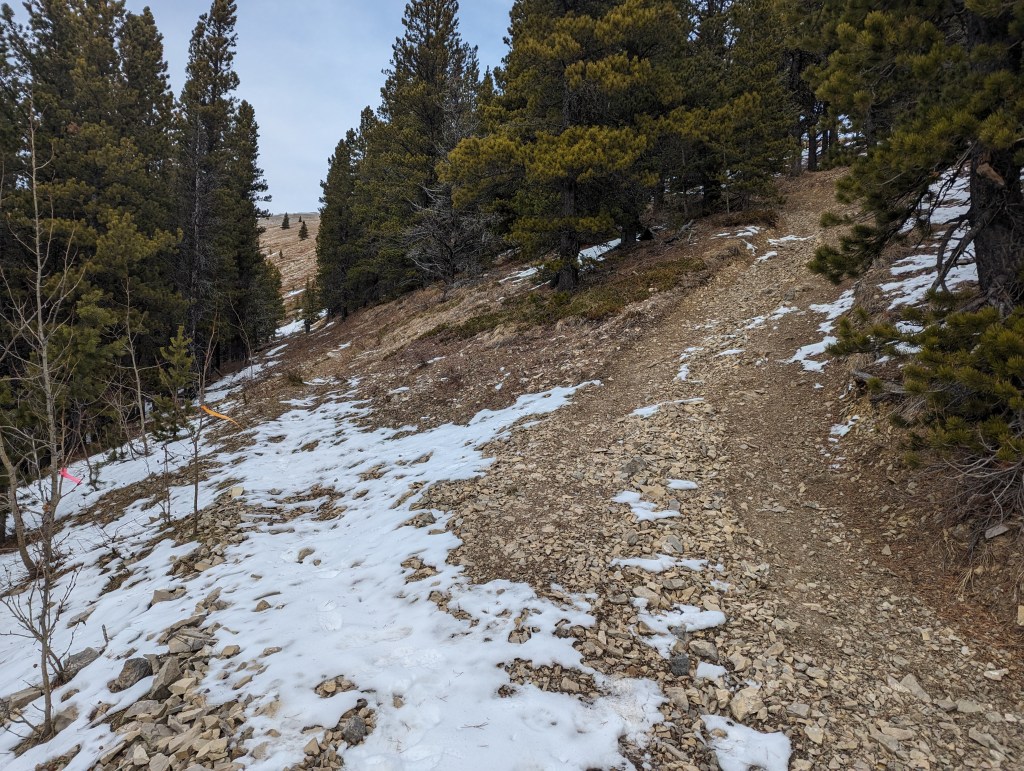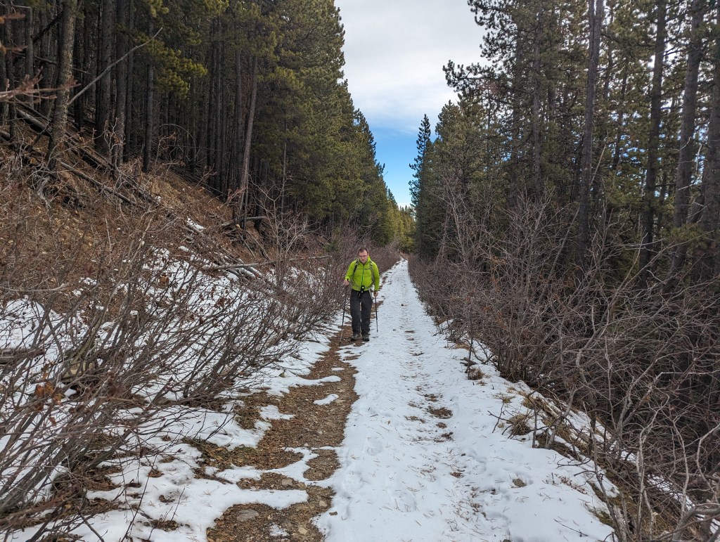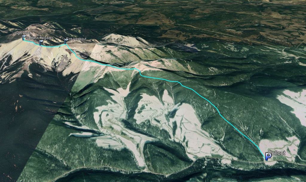 Ram Mountain is a good choice for shoulder season. One potential avalanche slope is crossed if taking the bypass trail to save on elevation gain and loss, but the main OHV trail, which leads directly to the fire lookout, avoids it.