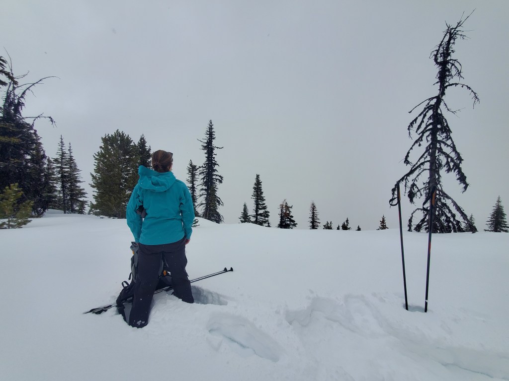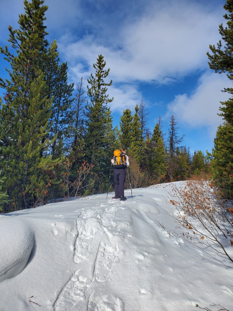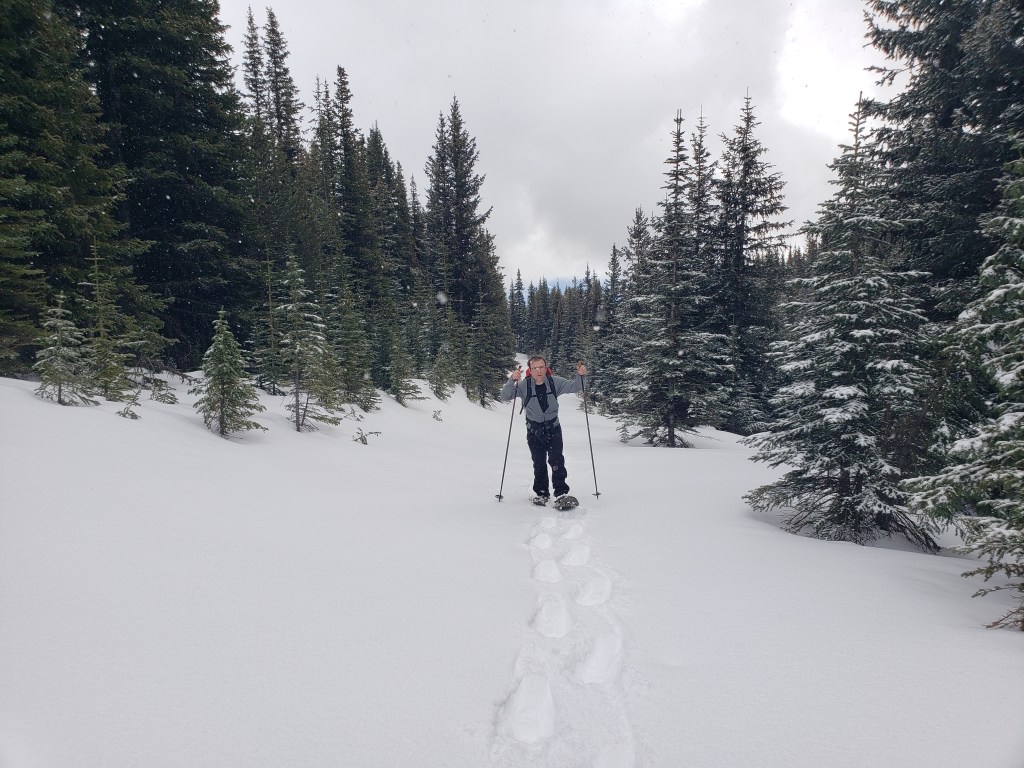 We set out on our classic skis, then switched to snow-shoes beyond the groomed tracks. Wider touring skis would have been most suitable for this trip and would have eliminated the need to transition to snow shoes once the groomed track ended. This trip report goes as far as Palisades Lookout. A keen peak-bagger can continue on to the high point of the ridge with relative ease, if it strikes their fancy. The view doesn’t change between the lookout and the high point, however.