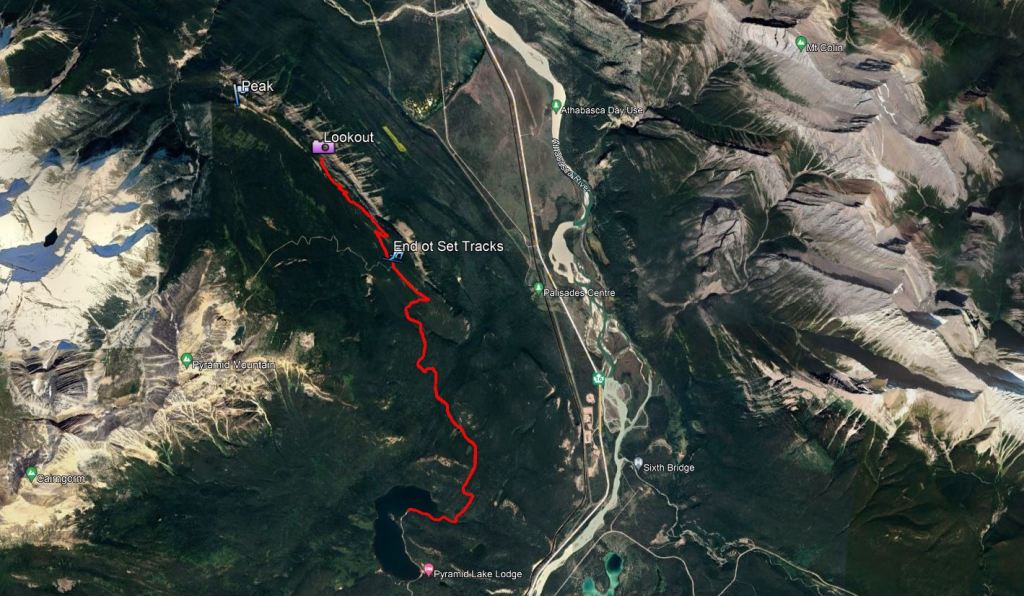 On the return trip we passed a peak-bagger intent on summiting The Palisade who unfortunately did not even have snow shoes. He was a few hundred meters past the end of the groomed ski trail and was already loosing his footing in thigh-deep snow. I indicated that I had broken trail as far as the lookout only, and wished him the best of luck beyond that. He did not look happy.