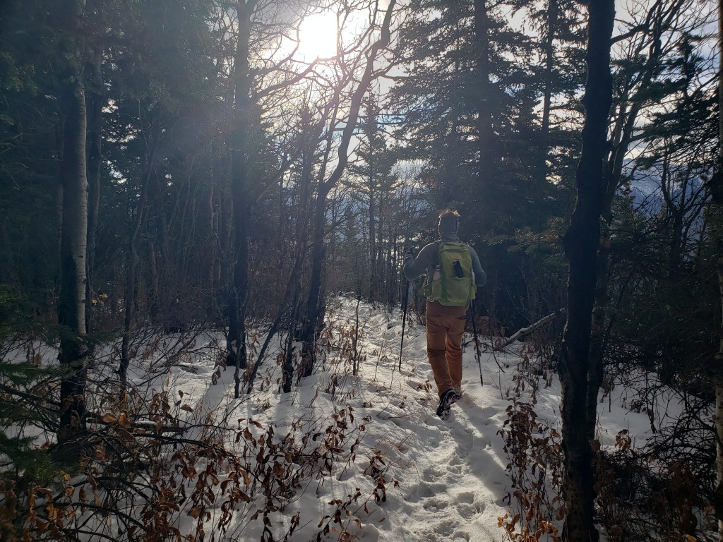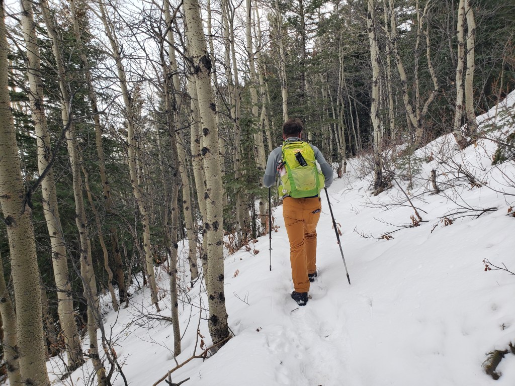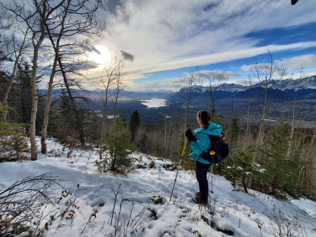 We had arranged the Friday Nov 25 off of work to go skiing at Marmot. Much to our delight, Marmot was dumped on with snow and we spent the day exhausting ourselves on surprise mid-week powder! Feeling tired and already satisfied, we picked a more relaxing activity for Saturday Nov 26. Mount Solomon is a quick hike that begins in front of Black Cat Guest Ranch, just outside of Brûlé. The driveway to the ranch is flat and easy to drive with AWD and winter tires. We parked in a pullout off to the side, out of the way of their gate.