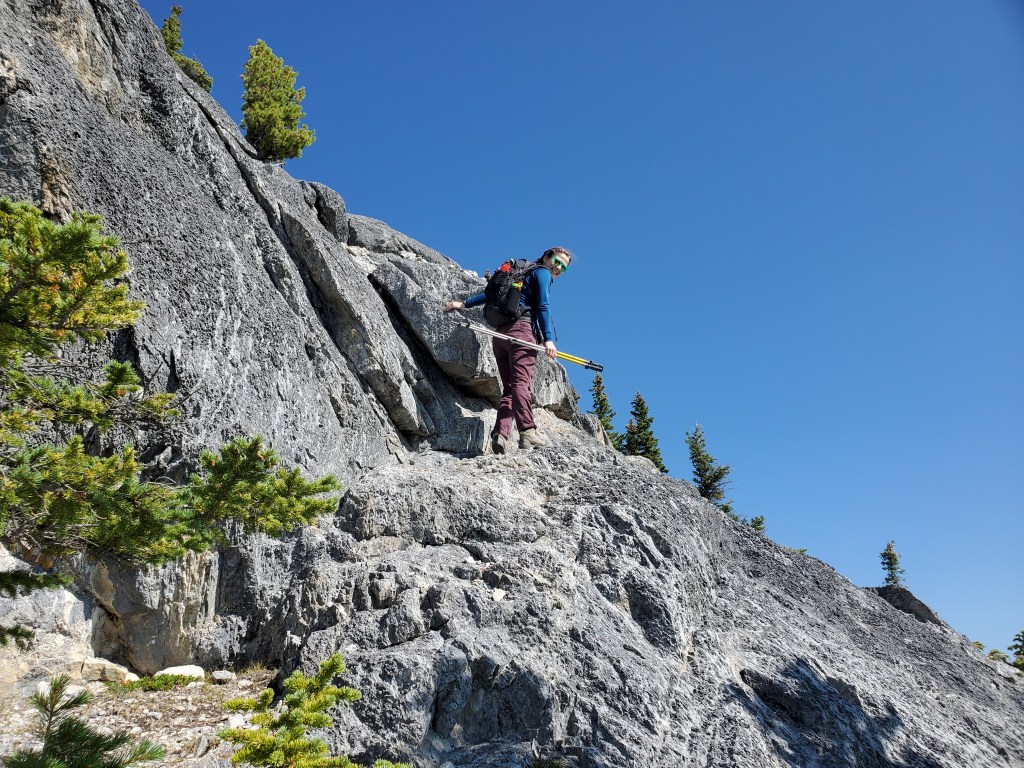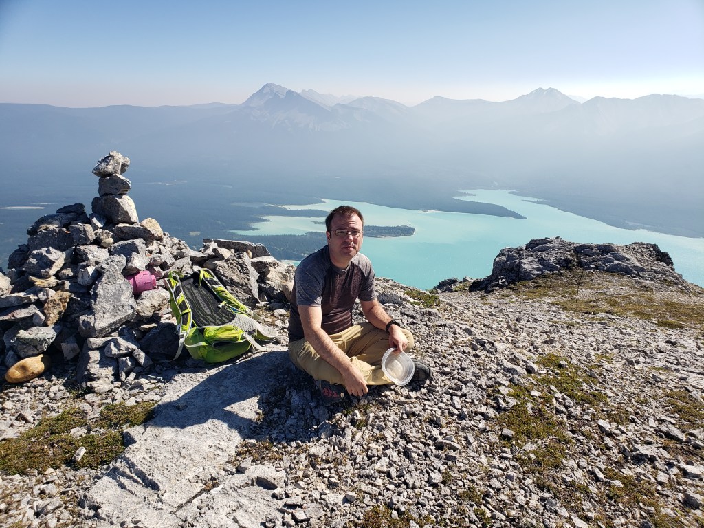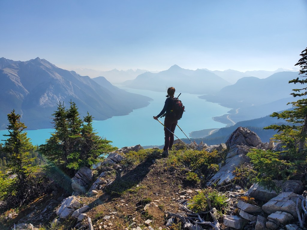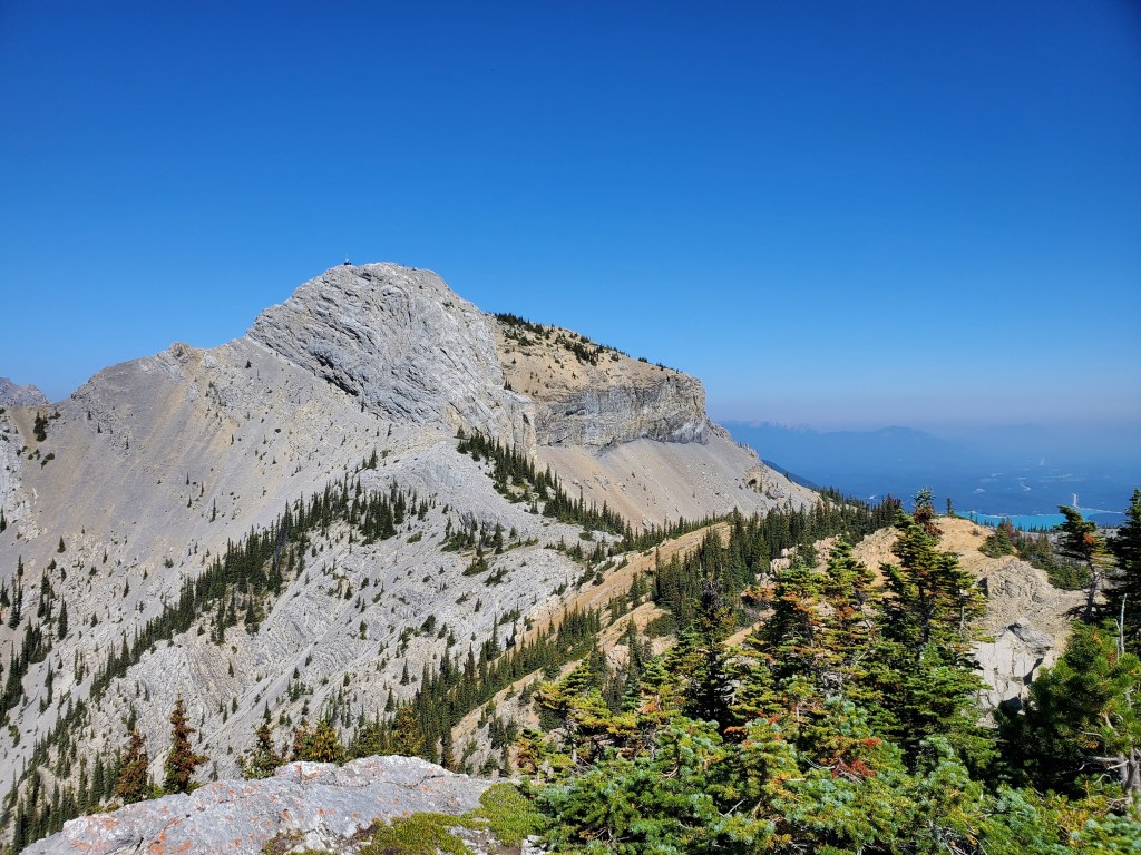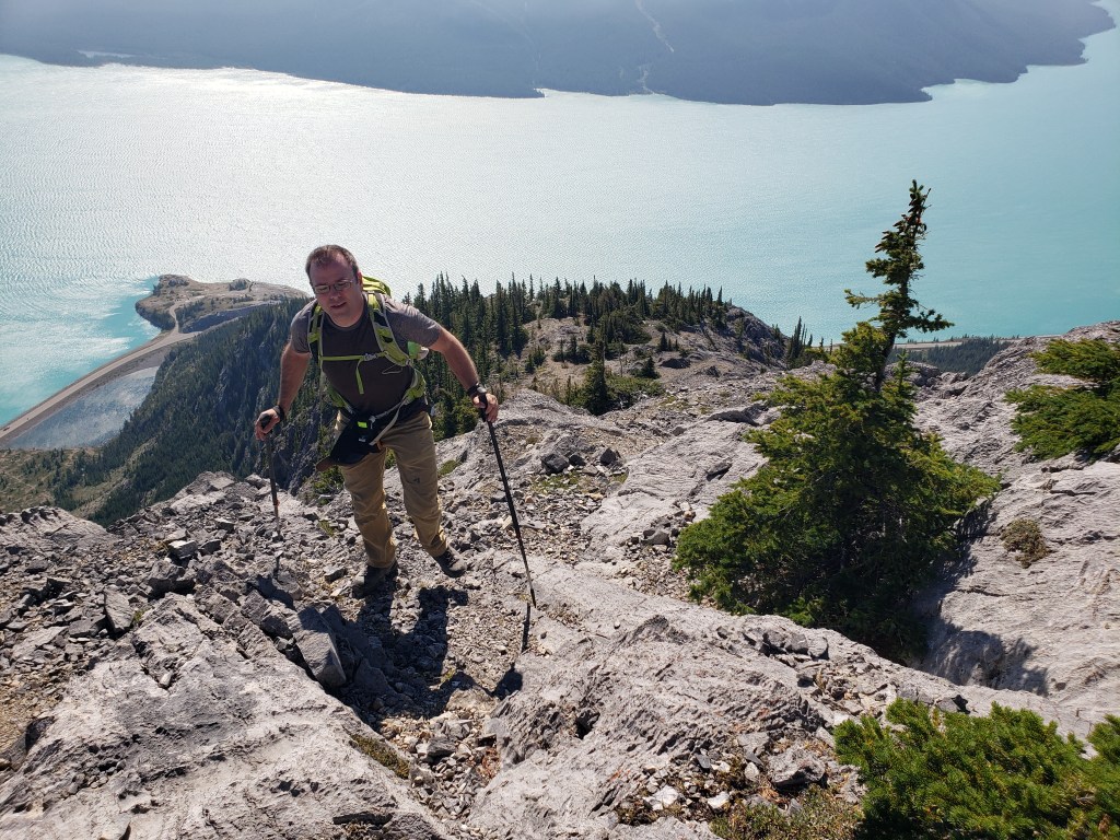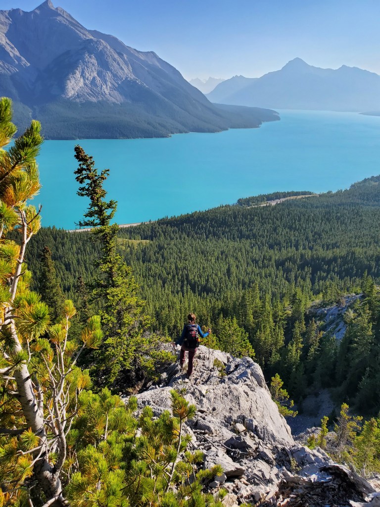 The view of Abraham Lake from the parking lot. Windy Point lives up to its name!Beginning up Windy Ridge. We picked up a trail across the highway from the driveway to the parking lot.There is no bushwhacking on the Windy Ridge portion of the loop. We were immediately scrambling up the steep ridge. The parking lot can be seen across the highway. Approaching the second hump of the ridge. There are a few moderate lines to choose up the slab and they all looked fun. It’s plain to see why there are so many climbing crags around Windy Point.We chose a line stemming up a fun corner feature.The path to this line looks well-trodden, though not necessarily by humans. All of the trees along this sheep trail are likely to hold ticks in Spring.Continuing the walk up sla-aa-ab.Dan following on some easy to moderate scrambling. The steep nature of the ridge means Abraham Lake provides an impressive backdrop for all of the photos.Approaching the third hump in Windy Ridge.Trails zig-zag through the slab making travel easier.Almost at the high point of Windy Ridge, scouting out the best line.Reaching our first peak of the day: Windy Ridge. Abraham Mountain is the large peak in the background.Summit panorama from Windy Ridge.Continuing on to The Buckle, which is the high point in this photo. A communications repeater station is barely visible. We’ll be traversing around the bottom of the summit block to the left and then climbing the left side of the face.The path traversing around the left of The Buckle becomes obvious once close.The traverse was across a much gentler slope than our initial impression had us believing.Scrambling the difficult line up The Buckle. It’s worth noting that I have been rock climbing for several years and this line is well within the grade I am confident climbing. Not everyone should feel comfortable on this terrain, and that’s OK. Unconfirmed reports indicate that there may be an easier line much further left, behind the peak. It’s also possible to simply skip this peak and continue straight on to Talus Peak.Dan follows me up the difficult scramble.You can almost pinpoint the instant he realizes he married a goat, not a woman.Reaching our second peak of the day: The Buckle. Taking in the scenic view of mobile radio equipment framed by Abraham Mountain. This is not a cell tower. Dipole antennas like these would typically be used for radio by first responders such as fire fighters or SAR.Sublime views over the intensely turquoise waters of Abraham Lake.The wind did not let up; in fact it stole the lid to Dan’s sandwich container! With it the wind carried in smoke from the Chetamon Wildfire in Jasper.Summit panorama from The Buckle.Downclimbing The Buckle via the same line we had ascended.Glancing back up at Dan as he follows the difficult downclimb of The Buckle.Continuing on to Talus Peak (right).As we grew closer, the walk up to the peak came into view. The terrain up Talus Peak was all easy.Reaching our third peak of the day: Talus Peak. Reviewing the summit register, this peak sees a few parties per year.Summit panorama from Talus Peak.Dan stands on Talus Peak. In the background is The Buckle (center) and Windy Ridge (right). It can be seen where an alternate ascent route might exist up the back of The Buckle. In the distance, on the other side of Abraham Lake, is Kista Peak. Continuing on to Humpback Ridge. I expected this last part to be somewhat of a dull bushwhack, but it might have been the best scrambling of the day. There’s a lot of variety to this ridge!Feeling cute, might delete later.Crossing over the first hump and continuing down to the next one.Looking back at the first hump, presumably the peak of Humpback Ridge (and our fourth peak of the day).Views over Abraham Lake were largely unobscured by trees. There was less bushwhacking than I expected.I casually continue down the next hump.Glancing down the side of Humpback Ridge. The route won’t take us this way – we’ll continue along the ridge.Looking back up as Dan follows me down the ridge.I near the bottom of this hump.Glancing back up at Dan. The line appears much steeper from below. The previous photo better shows the actual terrain.Making our way over and up the next hump of the aptly-named Humpback Ridge.Looking across our circuit at The Buckle (left) and Windy Ridge (right).Downclimbing another hump (I’ve lost track of how many this is). It’s not as steep as it looks – slugform is just my natural climbing style.Hiking over the last hump before descending back to the valley.Leaving Humpback Ridge and entering the trees. There is about 400 m of bushwhacking still to get back to the highway, but it was reasonably intuitive to follow the slope downhill and a few clearings along the way made it easy to keep our bearings.Looking back up at the bushwhack. We came from the treed hump at the left.