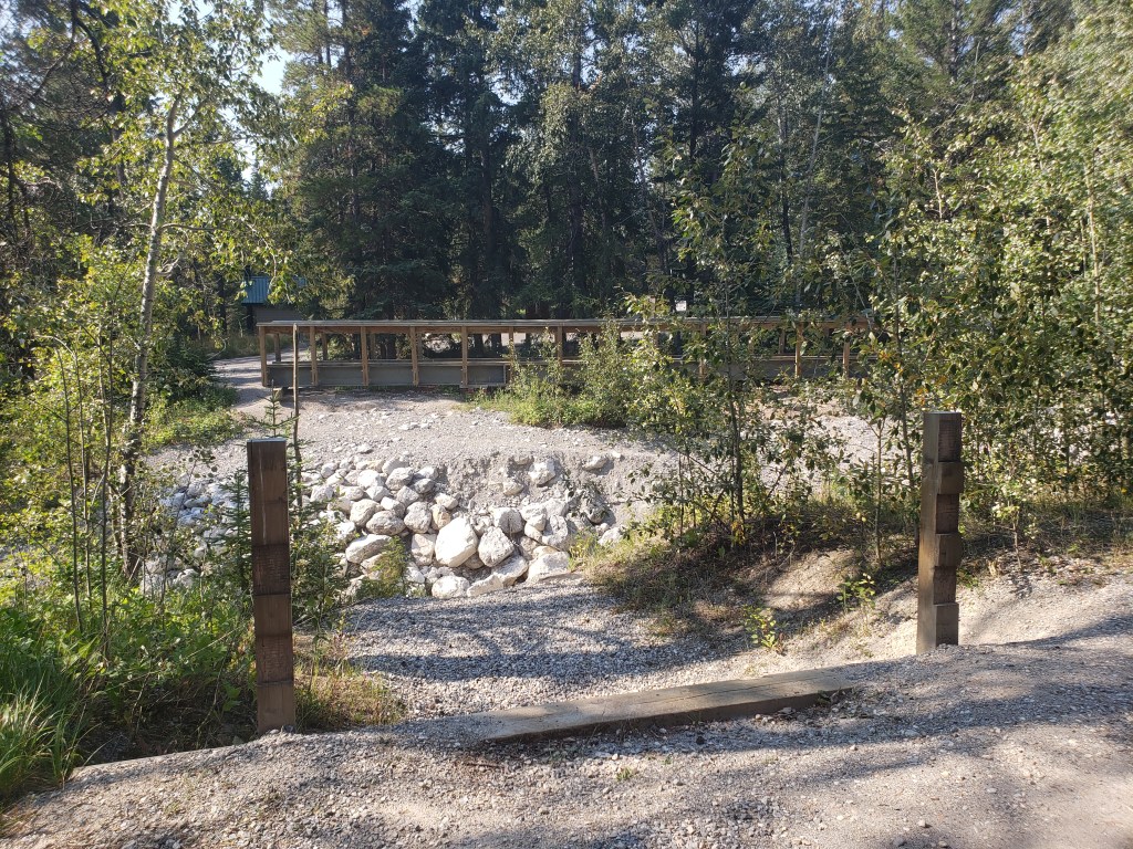 The 1A was closed to vehicle traffic the year of this trip report, so I parked along the onramp to the Trans-Canada Highway where there was a wide shoulder, and walked in via the 1A. It looks tempting in this map to park further east and bushwhack directly up to the trail, but jersey barriers prevent vehicles from pulling very far off to the shoulder there and tall wildlife fences line this entire stretch of highway. Further east is probably not a great place to stop.