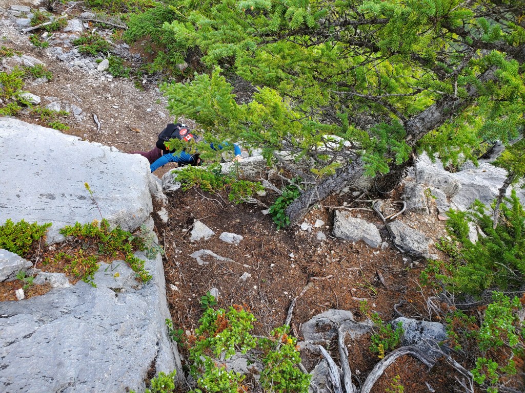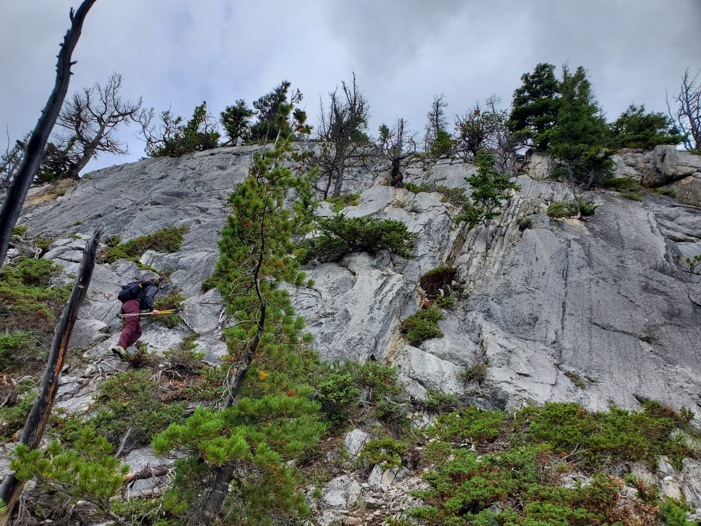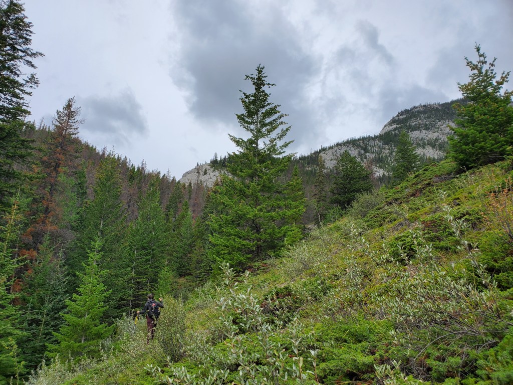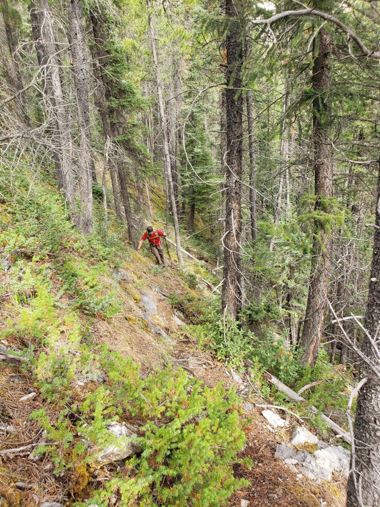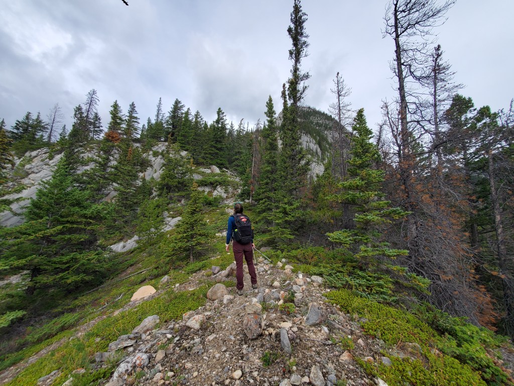 We hiked the rest of the way back out and reached our vehicle in 7 hr 40 min. We managed to just squeeze out with the correct direction of traffic on Celestine Lake Road and didn’t have to wait 90 minutes. I thoroughly enjoyed the high quality scrambling on Esplanade Mountain, but would only have recommended it to experienced scramblers prior to the fire. The deadfall from the 2022 Chetamon Wildfire no doubt adds new hazards and complications to all of the trips along Celestine Lake Road, and I can’t say what state the route is now in. I was deeply saddened to watch news reports of the wildfire following this beautiful trip.