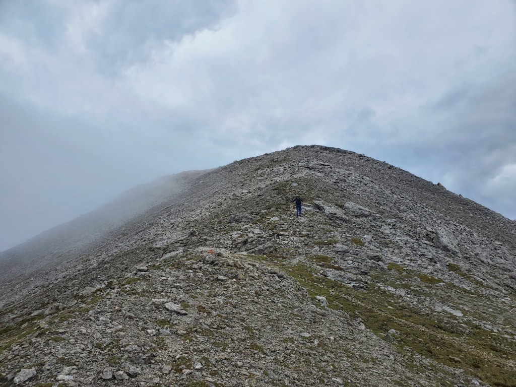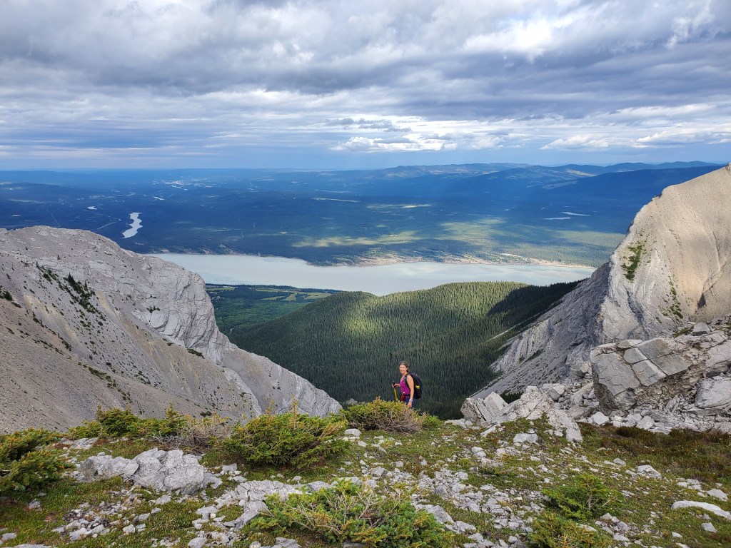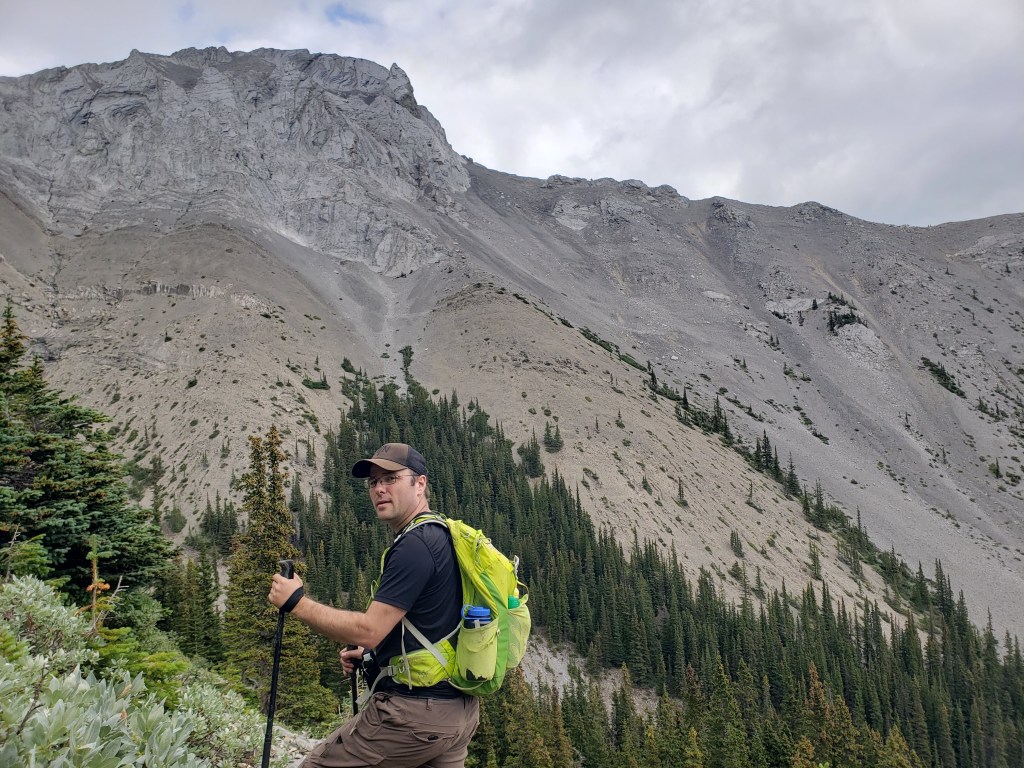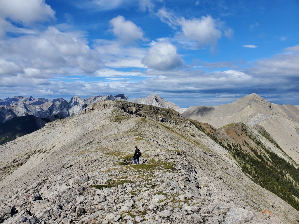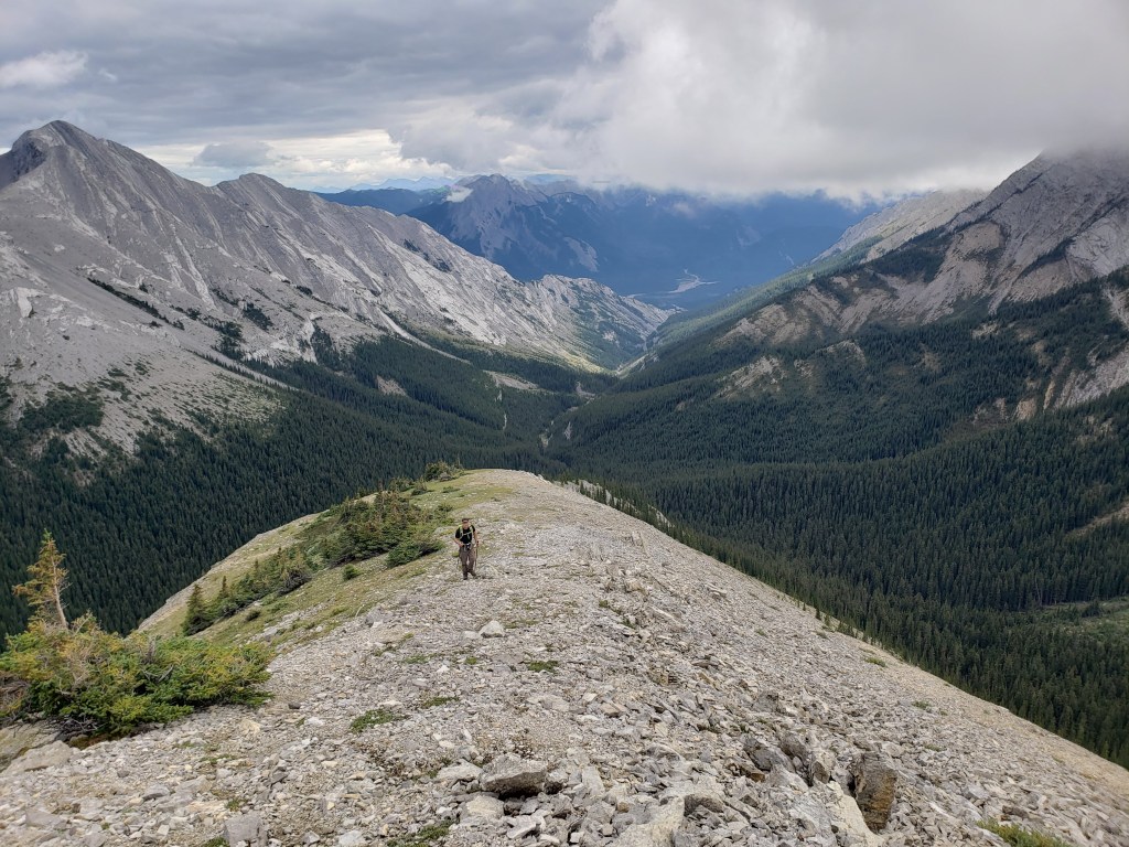 A trail can be picked up just north of Supply Creek. It’s easy to walk up the wide, dry creek bed too.A short way up the trail, signage confirms we are following the correct creek. The County’s access road leads to this spot.Supply Creek was mostly broad, dry gravel when we were there. Bedson Ridge lies ahead. We are aiming for the right-hand side of the low middle section.The turn up a branch to the right was marked with a number of cairns and inukshuks. I am pointing to the branch in this photo.A bit of hands-on scrambling over rocks was needed as we made our way up this branch.We passed through a few bushy sections, too.We went pretty much straight up the middle of this photo. We aimed for a low spot in the ridge, knowing any elevation gained would immediately be lost as we descended the back side.Looking back the way we came. Brûlé Lake comes into view behind us.Reaching the top, still on easy terrain.Upon reaching the top of the ridge, we got to see for ourselves how much elevation we would be losing and regaining to reach the peak (in clouds, to the left). It was certainly demoralizing.We briefly toyed with the idea of side-hilling around the U, but realized the error in our thinking after a few steps. Most of the scree is loose and tedious, much better for scree-skiing down. We spotted a solid looking gully at the far side that would allow us to regain elevation without too much of a trudge back up and we aimed for this.We crossed the floor of the U and bushwhacked through a short section of trees to get to the gully on the opposite side. Travel up the gully was decent, definitely easier than side-hilling the whole way around.Looking back at the side of the U we’d come from. The fierce block at the left is what prevents a scrambler from simply ridge walking around the top. I think the block resembles an Ogre head in profile, don’t you? Perhaps we can call it “Ogre Peak”? This fits well with nearby Ogre Canyon.Regaining the ridge, still on easy terrain.We regained the ridge on sort of a nose feature. This photo is looking south with the two sides of the U extending along the two sides of the shot. Ogre Canyon would be at the far toe of the left-hand ridge.Finally on the ridge and traversing around the rest of the U. The peak lies ahead in clouds.Looking back. We’d ascended the nose at the right. “Ogre Peak” is just behind it.Almost at the peak, hoping the clouds will part.Looking back. Is Boule Roche (not to be confused with Roche Brûlé) almost visible through the clouds?Spot WX‘s weather forecast was exactly accurate and the clouds broke just as we reached the peak. We came up Supply Creek out of the shot to the right, and then re-gained the nose at the right.Looking southwest over the Athabasca River.Summit panorama on Bedson Ridge.Looking across the U at the way we came. We gained the ridge slightly left of Dan and then scree-skied down the chute above my backpack. On the return trip we will aim to gain as much elevation as possible on solid terrain within the trees. The peak to the left is what I’m calling “Ogre Peak”. The peak to the right isn’t officially named, but locals call it Brûlé Mountain or Roche Brûlé.Views to the north of the Boule Range.Traversing around the U to the nose (right)Dan stands in front of Boule Roche. The peak is barely visible behind its jagged ridge.Descending back down the nose into the flat center of the U.We regained the ridge without too much fuss. Brûlé Lake looks a bit more cheerful in the afternoon light.After following Supply Creek back out to the gravel road, we stopped to take in some of the historic sites along the closed off section of 2nd St. Here are the foundations of the former Brûlé School.Here I’m walking the front steps to the former Mine Manager’s House, now all but reclaimed by nature.