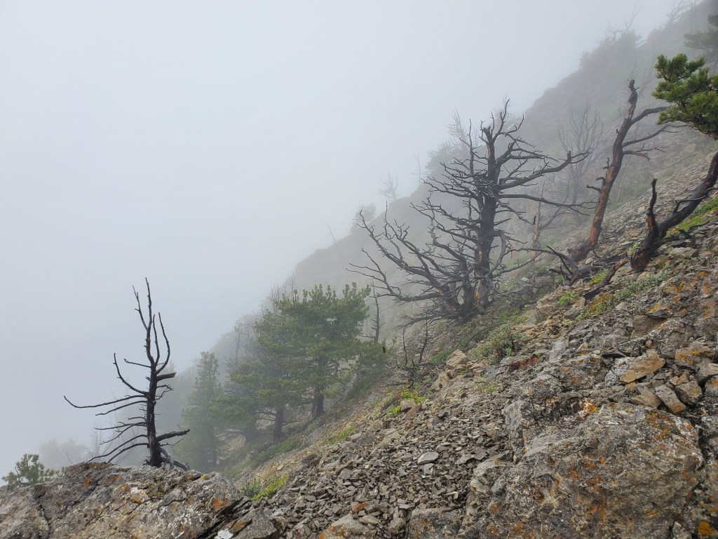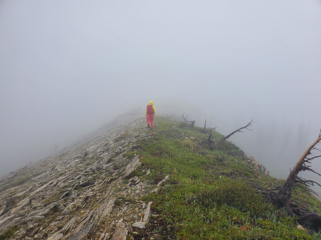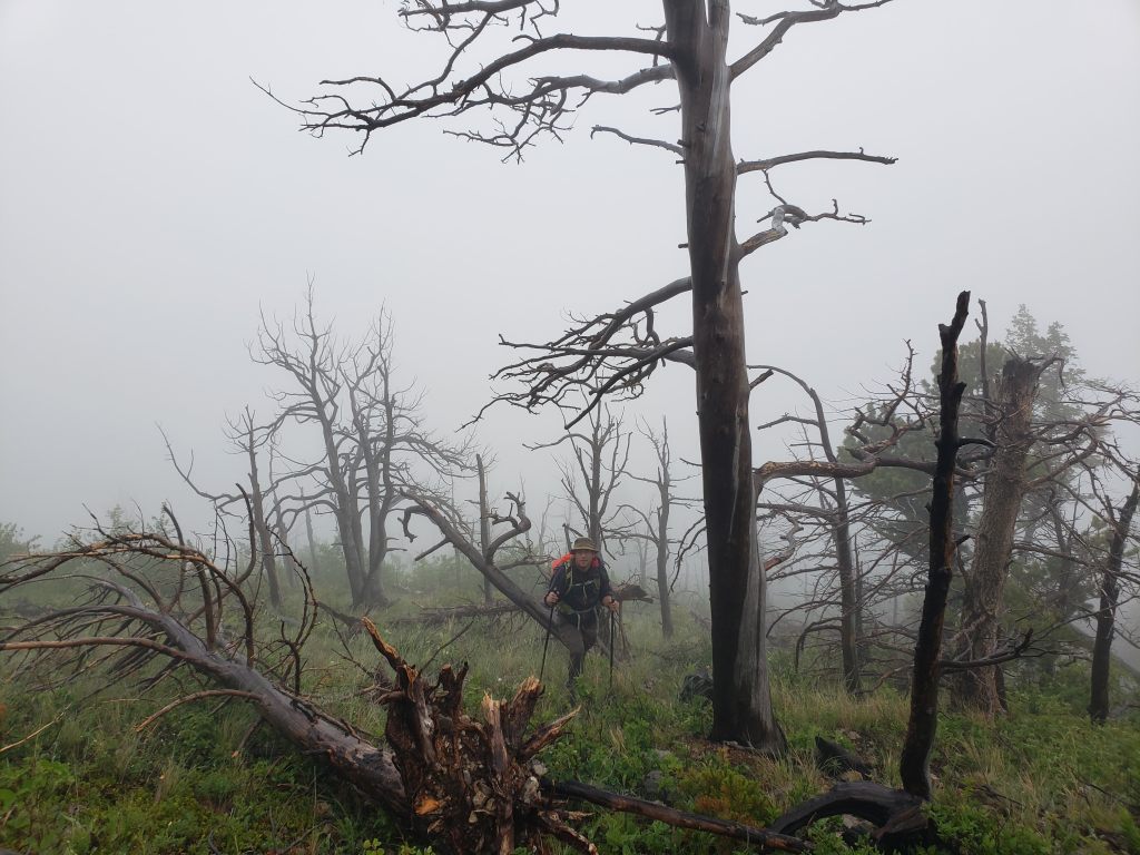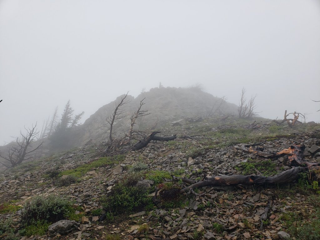 The weather forecast for our last day in the area looked very rainy. Dan was keen to sleep in and then go for brunch. I hoped the rain wouldn’t be as bad as forecast and still wanted to bag a peak. I did, however, limit my ambition to a tame objective. The rain did not let up and the clouds were so thick that my GPS went haywire and became useless. I managed to cobble together a route overview from the parts where my GPS watch recorded correctly, but I didn’t trust the data enough to navigate by. Unfortunately, our photos provide limited information too.