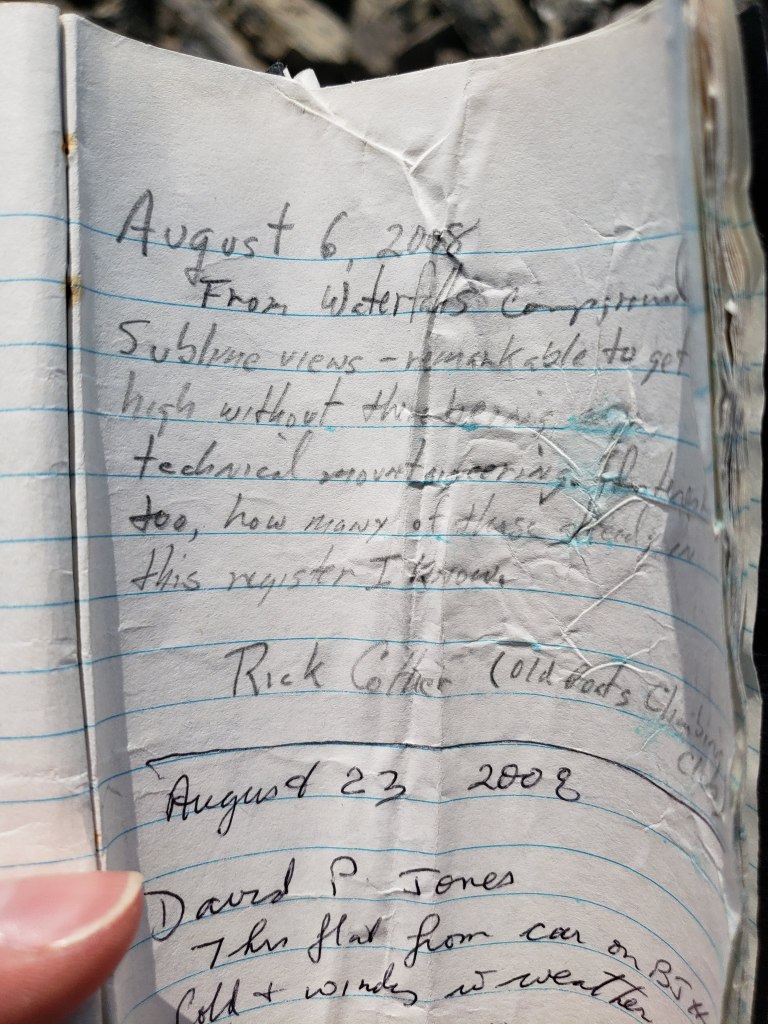 Poboktan Mountain is only 30 m shy of being an 11,000er. This height difference seems to keeps if off of most people’s radar and mountain sees few ascents. It was a fun treat to find a summit register placed in the 80’s that was still nowhere near full. It’s an added privilege to be able to sign my name along with some of the greats that grace its pages.
