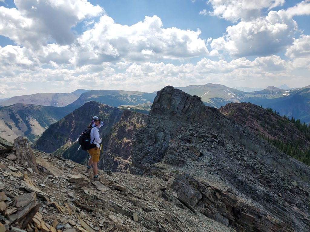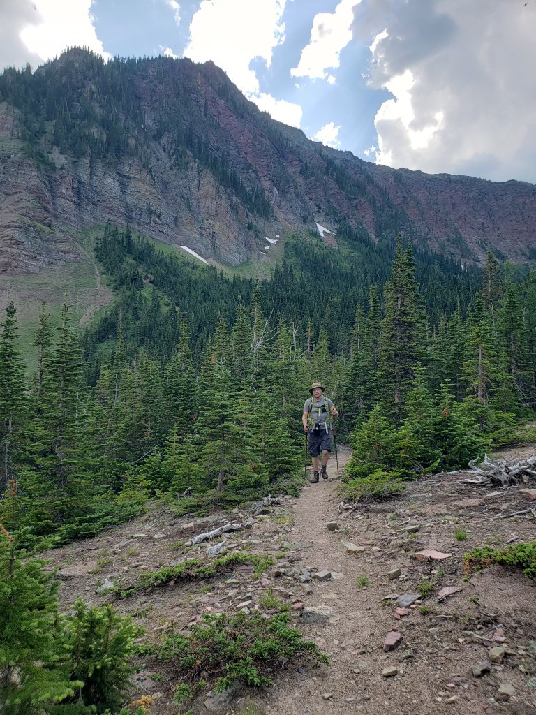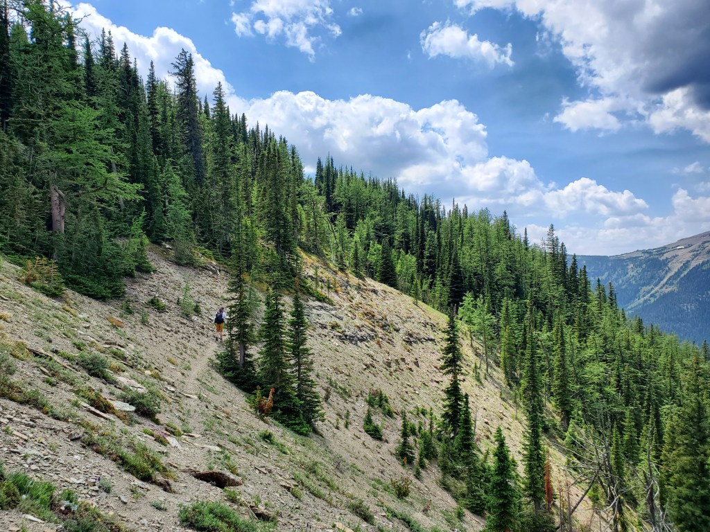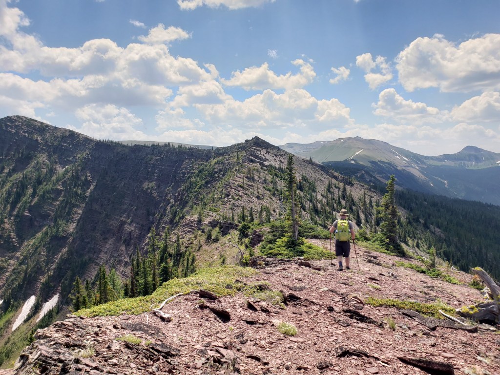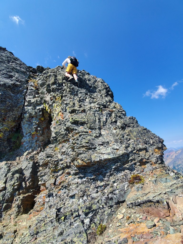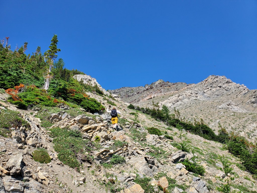 The next day we biked to Loaf Mountain and realized that there is a wide, easy trail all the way to the col above Bovin Lake. Bovin Lake is roughly the spot where Spionkop Ridge, Loaf Mountain, Drywood Mountain, Pincher Ridge, and Victoria Ridge meet. That trail was substantially easier and was bustling with other hikers. We wondered why it wasn’t the recommended approach for Victoria Ridge! Victoria Peak would be significantly longer from this approach, but would avoid trespassing and would also avoid the difficult cliff section, reducing the objective down to an easy scramble. The Bovin Lake trail just seems like a better time out.
