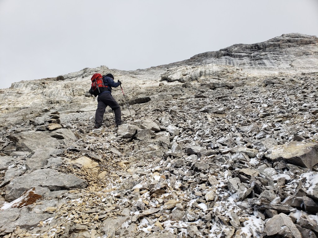 Notes: Mostly hiking with one move of easy scrambling. This route will have been impacted by the Jasper Wildfire in 2024.