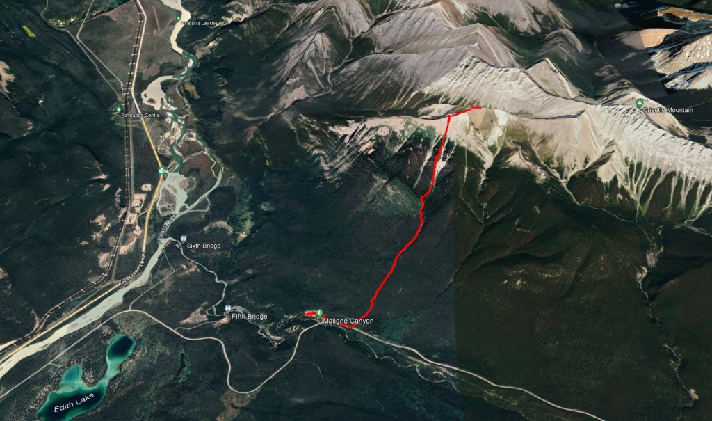 We made it back to Maligne Canyon in 5 hrs 45 min. Roche Bonhomme makes for a great little trip near the Jasper townsite that I would recommend to a fit friend. Because the ascent route follows an avalanche path, this one can only be attempted when fully snow-free.
