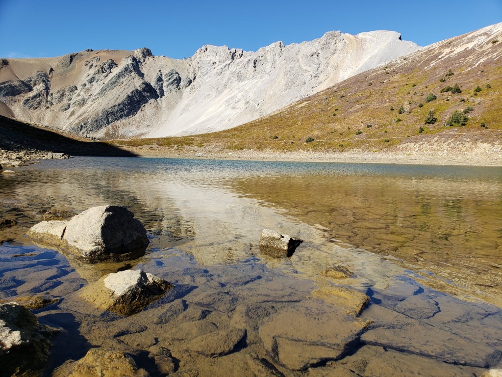 Mount Bourgeau is a pleasant day out with few difficulties. The distance looks lengthy on paper, but passes quickly on easy trail. One section before the summit is a bit rocky and might be considered easy scrambling. Because the approach trail is shared with Bourgeau Lake and Harvey Pass, parking tends to fill up early.