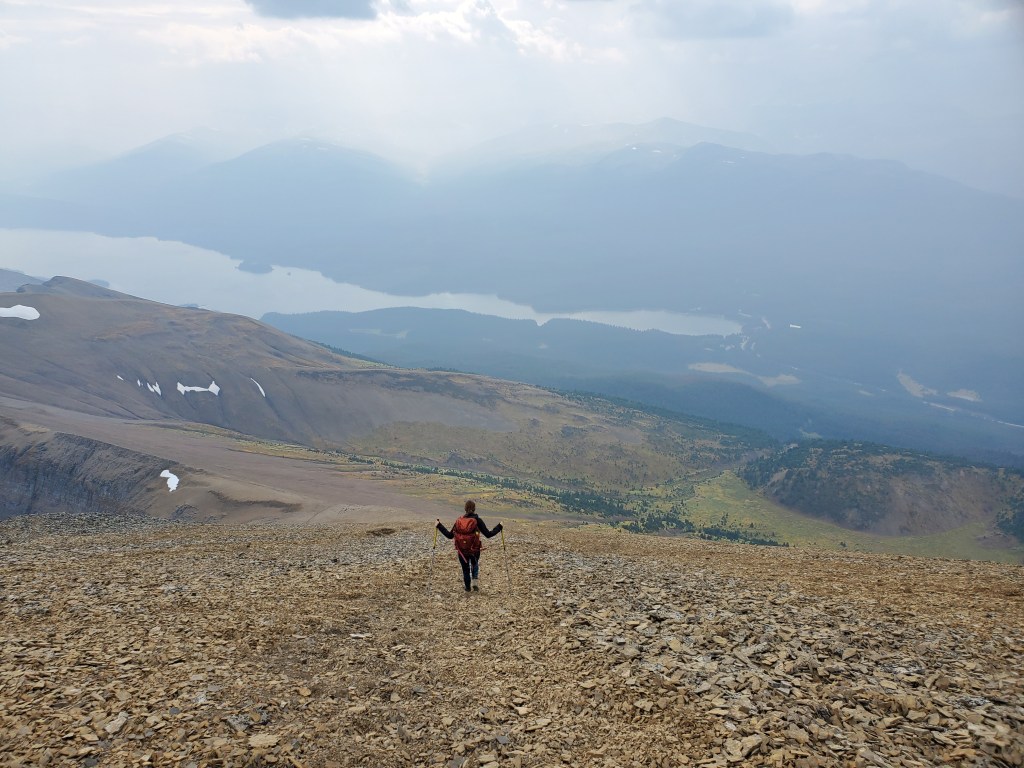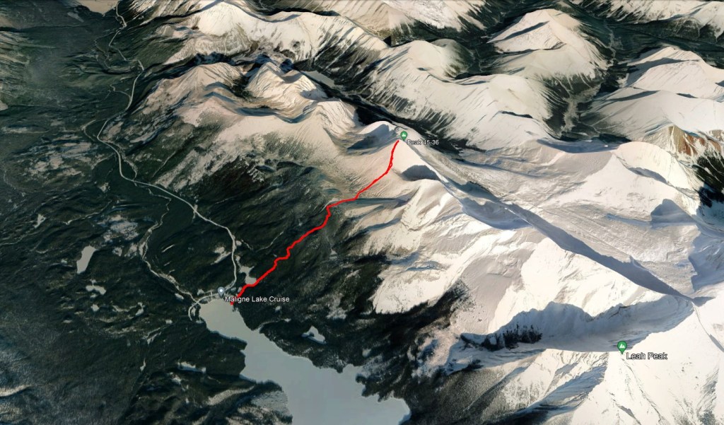 Maligne Lake has two parking lots and the Opal Hills trailhead is accessed from the first parking lot. The Opal Hills Loop is an official, well-maintained Parks Canada trail which covers about two thirds of the distance to the peak. The most direct route to the base of the summit is a counter-clockwise loop.