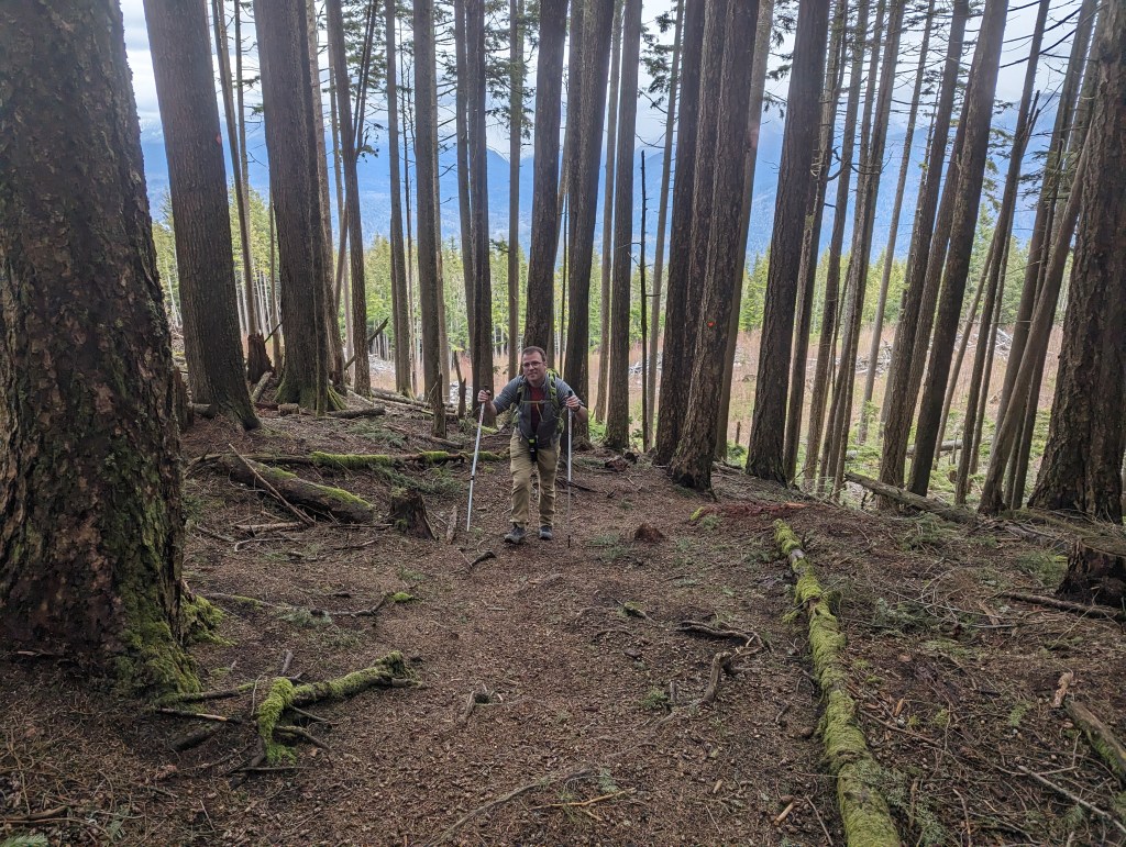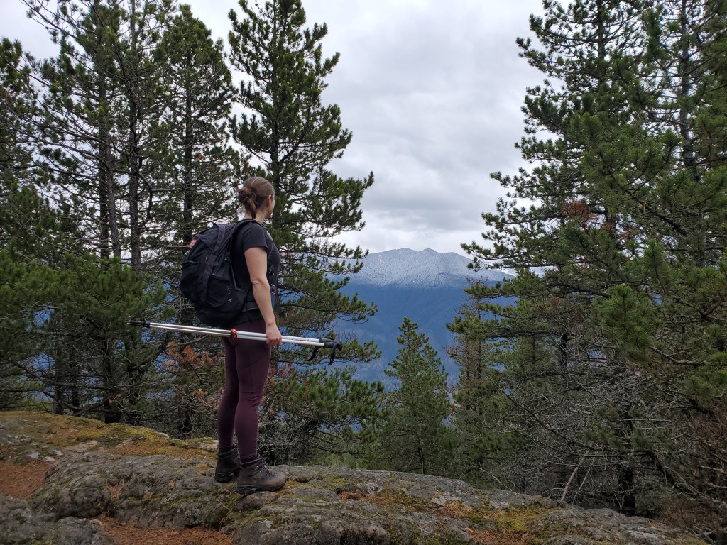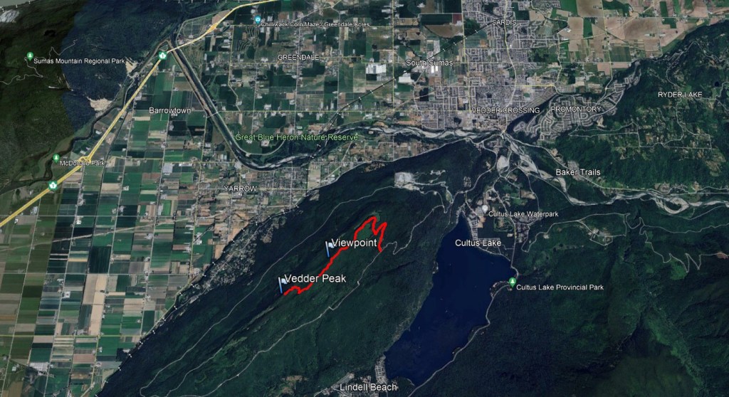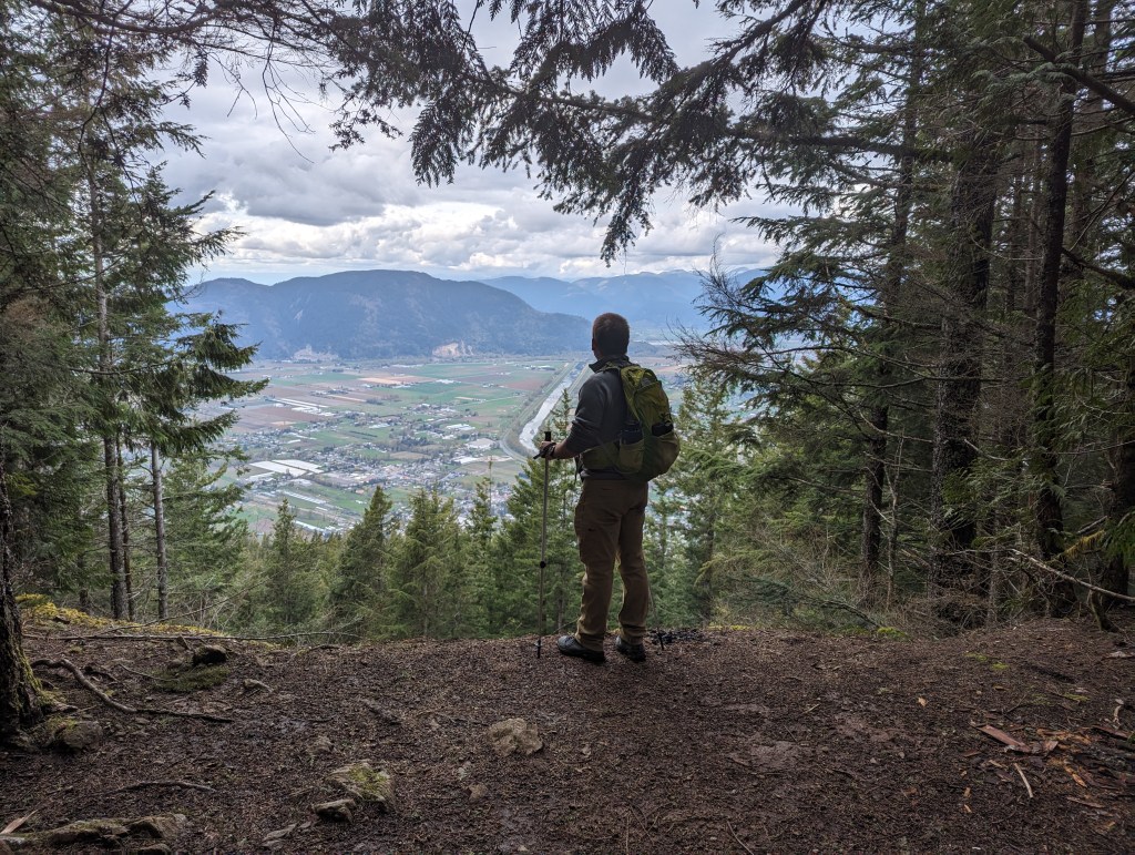 Vedder Mountain sits to the south of my childhood hometown and offers a few charming viewpoints. If hiking in Summer, nearby Cultus Lake makes for excellent swimming. I hiked this mountain in the 5th grade on a field-trip. Back then we started at the Majuba Hill trailhead, hiked across the mountain, and then headed down to our waiting bus at Cultus Lake. Private property has impacted the Majuba Hill trailhead and may not be reliable access. Instead, today, Vedder Mountain tends to be accessed from the Cultus Lake side. This hike is detailed in old copies of 103 Hikes in Southwestern British Columbia, but those without the book should have no trouble finding the the start of the route, at the point where a steep ungraded road turns off from Vedder Mountain FSR. The signed trailhead is 800 m up the rough road, but it is probably too risky for most passenger vehicles. Instead, the forestry road is wide enough at various points to pull to the side of for parking, with the extra 800m taken by foot.