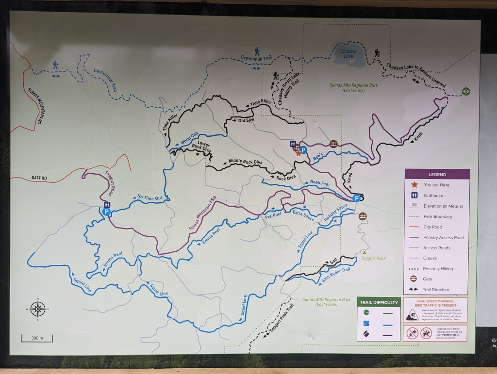 We made it back to the parking lot in 3 hrs. If doing this one again I would simply hike to the peak of Sumas Mountain and then return by the way I’d come, allowing 1 hr 20 min.