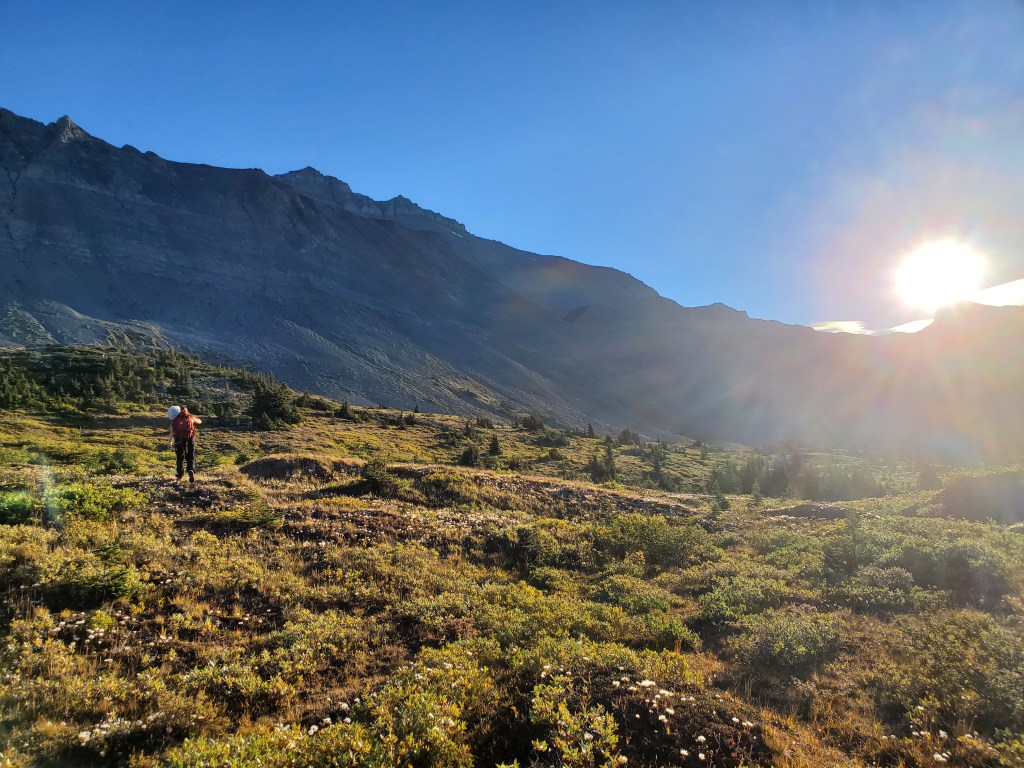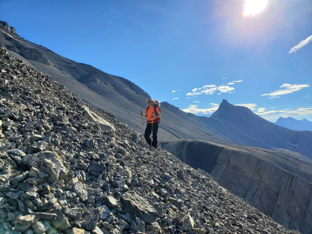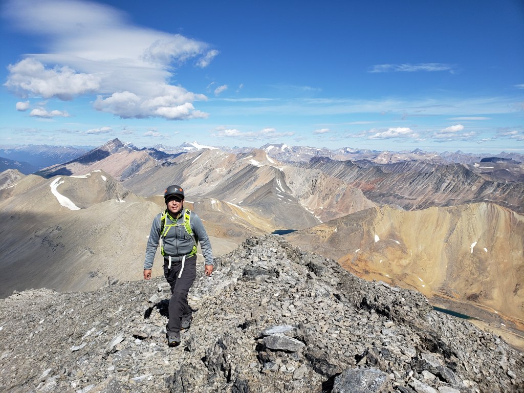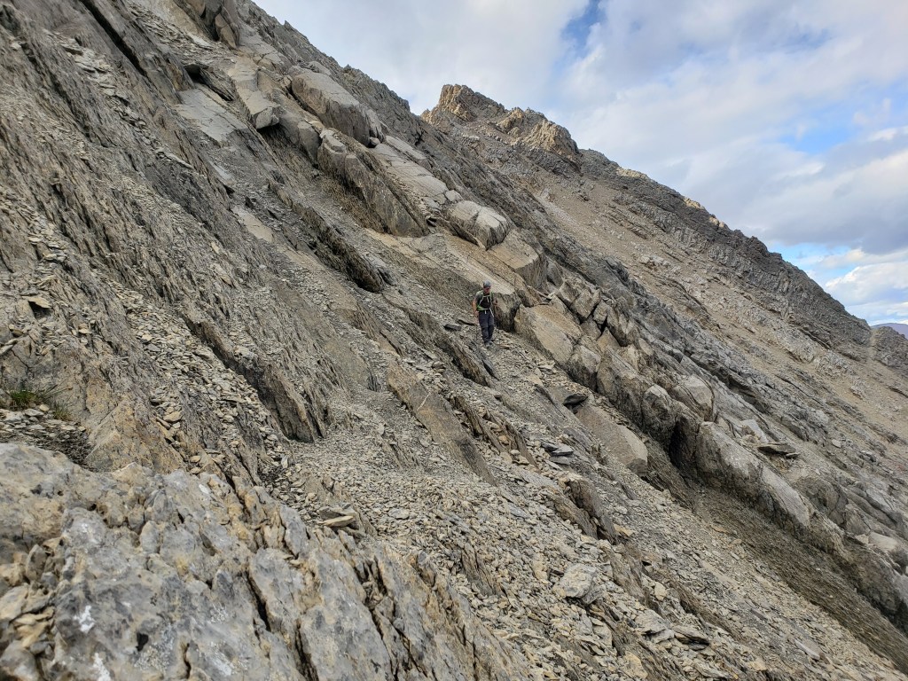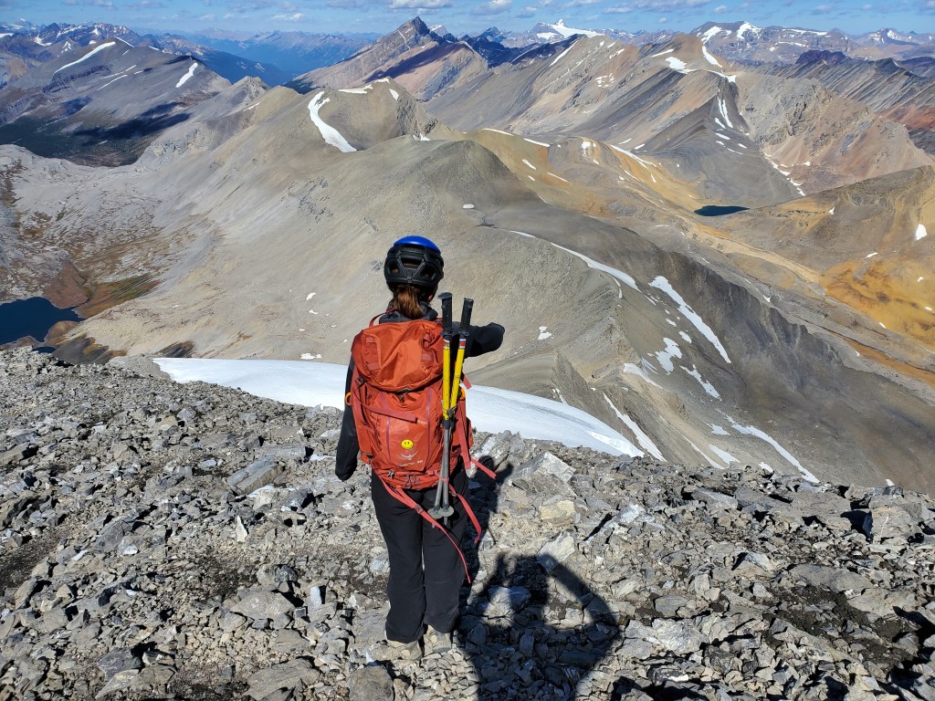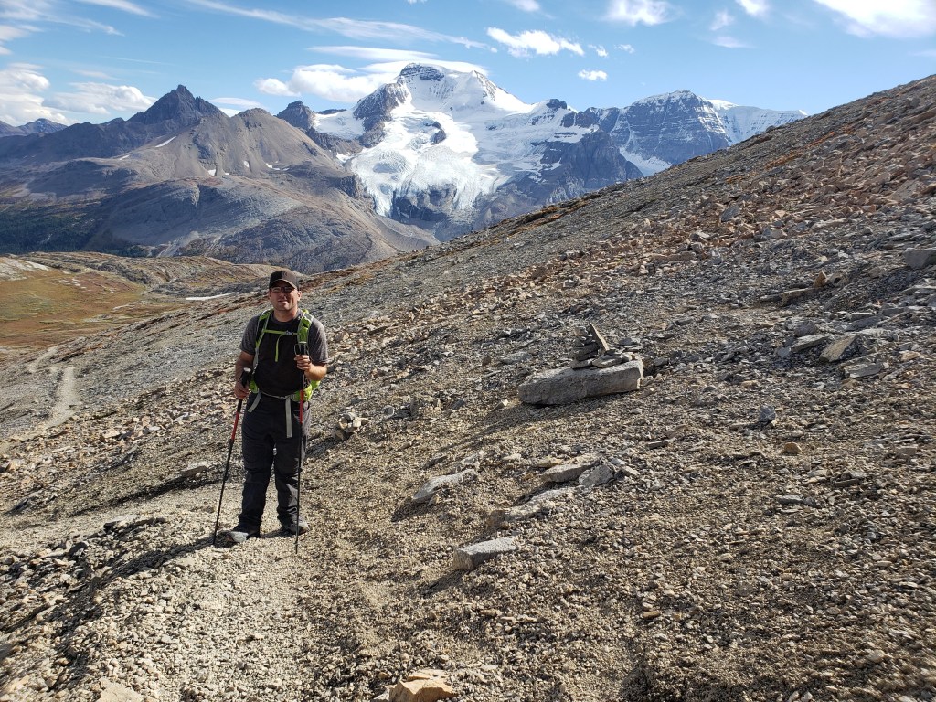 The trail up to Wilcox Pass is wide and well-maintained. We happened upon this handsome grouse, being the first ones on the trail this morning. The wildflowers had long-since finished blooming for the season, but their remaining tufts were still stunning in the low morning sun.We left the trail once the trees opened up into plateau and turned right, heading for Nigel first. We will start by gaining the ridge ahead of us. An easy slope exists at roughly the middle of this photo, about 200m before a large drainage. Nigel Peak can be seen above the ridge, left of center.Looking back: Mount Athabasca, Mount Andromeda, and the Little A Glacier dominate the horizon.To the east lies a distinctive subpeak of Nigel (Nigel SE3).Once the ridge is gained, the remaining route comes into view. To gain the peak (center) we will first traverse left to the north arête (left). A faint trail can just be seen.Looking back at Dan on the ridge, with Mount Athabasca, Mount Andromeda, and Snowdome in the background.The traverse is much easier once closer. A good trail leads across to the north arête.Looking back at the ascent ridge (foreground), behind which the Athabasca Glacier flows from between Mount Andromeda (center-left) and Snowdome (right).Reaching the arête, the remaining route up is along Nigel’s glacier. The route is quite close to the glacier in places. I would pack my mountaineering axe if doing this one again – even so, a slide on this glacier would almost certainly be fatal. At the left are two parallel ridges – the closer one (in shadow) is the ridge of Nigel, and the one behind it is Mount Wilcox.Gazing across at an impressive spire . A cairn in the foreground confirms that we are on route.A steep section is negotiated just before the summit. We’d had a good view of the sharp drop below the Nigel glacier when we’d done Tangle Ridge earlier in the summer and proceeded very carefully through this section.A shot looking back down this section. The moves are only easy scrambling, but I feel that the fall potential bumps this up to difficult scrambling.Dan nears the top of Nigel Peak. A string of 11,000ers can be seen to the left behind Wilcox, including the dazzling duo of Diadem and Wooley, divided by their snowy col.At last, the peak is just ahead.Topping out on Nigel Peak. Sunwapta can be seen at the left.Summit panorama.We began our descent route, returning to the pass the same way we’d come before heading across to Wilcox.Dan downclimbs a cliff band just below the summitI begin descending the steep section.Returning to the ridge. In the background are Mount Andromeda, Snowdome, and Mount Kitchener.We make our way across the pass, radiant in fall colours. Our next objective, Mount Wilcox, rises at center.Once back on the Wilcox Pass trail, an obvious well-worn route led to the shoulder of Wilcox. The majority of the hikers ahead of us turned back at the shoulder.The shoulder of Wilcox alone is certainly worthy of a day out, offering spectacular views of Mount Athabasca!A tired as we were by this point, we continued on beyond the shoulder.The Moderate scrambling rating is fair for Wilcox. There were a few braiding trails through the cliffs, all roughly equivalent in difficulty. The popularity of this peak makes rockfall a real concern and we were glad to have helmets.The handful of intertwining trails merge at the high point ahead. From there, only a few meters along the ridge will remain.The last few meters to the summit (ahead) feel a bit more exposed and would probably be the crux of the route. This section is still within moderate scrambling.Looking back as Dan begins this final cruxy section. Mount Andromeda and the Athabasca Glacier make for a spectacular backdrop.Looking north from the top of Mount Wilcox as a raven (center) circles us. Tangle ridge is at center with Sunwapta peeking out at the rightLooking southeast over Wilcox Pass to the peak we just came from. Nigel Peak stands at the opposite side of the pass.Summit panorama.We returned the way we came, picking our way back through the braiding trails across Wilcox’s vertical rock bandsOne last pause on the shoulder of Wilcox. From here we’ll return to the obvious, well-maintained Wilcox Pass trail and return to the parking lot.