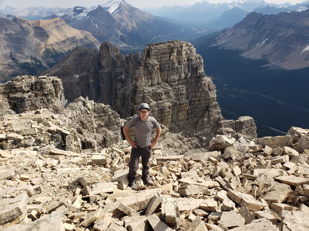 Dolomite is the distinctive string of jagged teeth seen from the Helen Lake trail, also visible as a side-view from the Icefields Parkway. The trek up this peak offers beautiful views in a relatively short day. Scrambling to the true summit (Peak 4) is at the moderate end of difficult scrambling, though reports from others indicate the named summit (Peak 3) is more difficult. We ended up behind a particular party on this day and decided we were content with just the true summit.