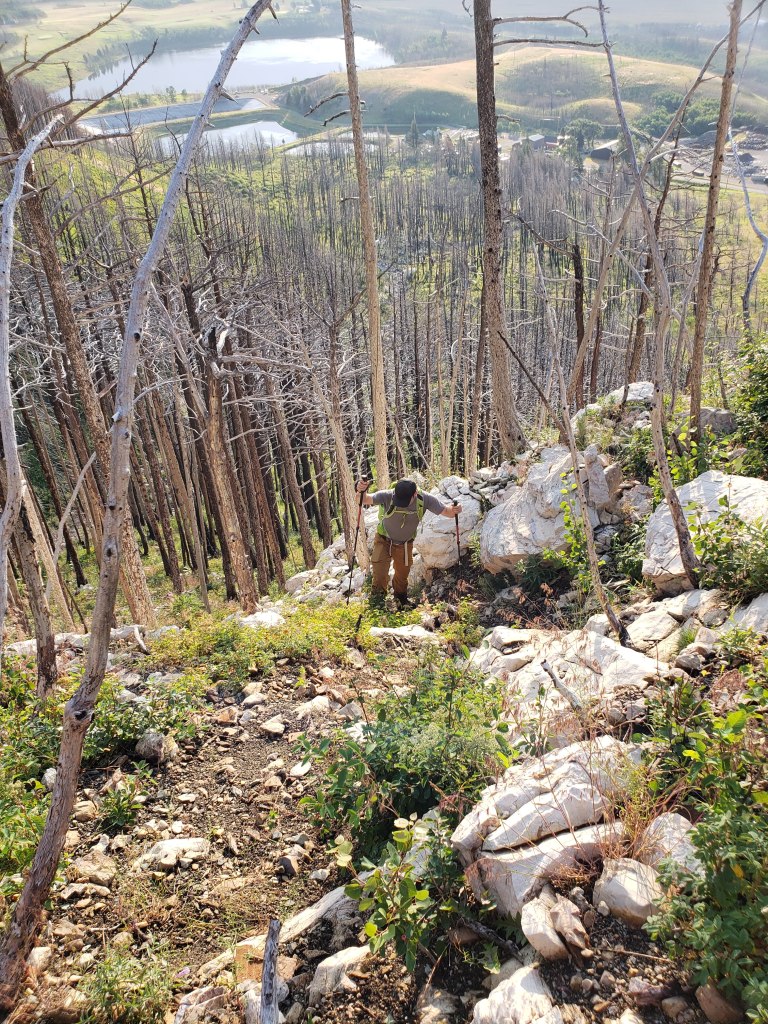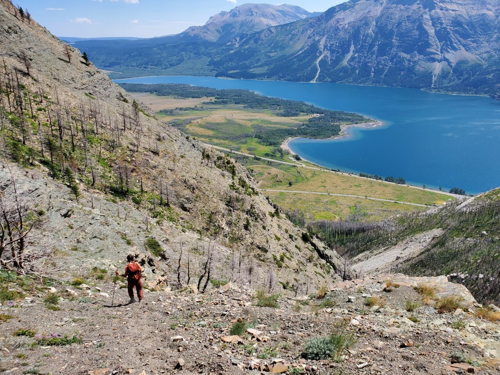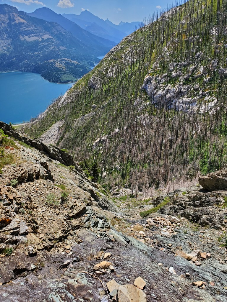 If looking to bag the peak of Mount Crandell, it sounds like an easier line exists from its west side (this area was still closed from the fire the year of our trip). If views over Waterton Lakes and the townsite are the goal, a nice set of stairs leads part way up the Bear’s Hump route to a scenic viewpoint. I would recommend neither the Bear’s Hump route nor the Tick Ridge route to a friend. Each is a different ratio of loose rock and forest fire deadfall, but neither is especially fun.