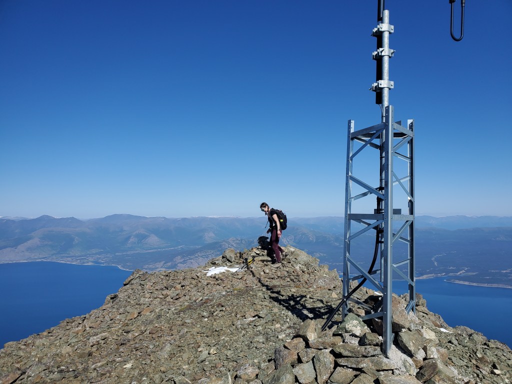 We reached the peak in 5 1/2 hours from the trailhead. The peak of Mount Wallace holds a few pieces of communications equipment. Another high point to the northwest on the mountain looked almost equivalent in elevation to this spot, but mapping indicates that this is the peak.