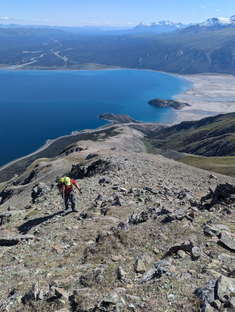 Looking back at our ascent slope, overlooking Kluane Lake.
