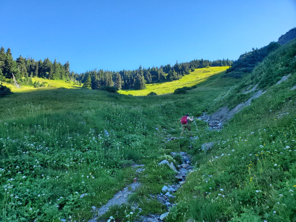 For most people, the crux of the day is the drive to the trailhead. The single lane road certainly wasn’t the muddiest, most rutted, steepest, or airiest road I’ve seen; rather, the challenge comes from a dozen or so ditch crossings where it is easy to bottom out without a high clearance vehicle. The road starts out relatively tame, but gets progressively worse as the drive continues, with the final 4 km providing the biggest challenge. On the day we went, the other vehicles which made it to the parking lot were two Jeeps, two larger SUVs, and a Chevy Silverado.