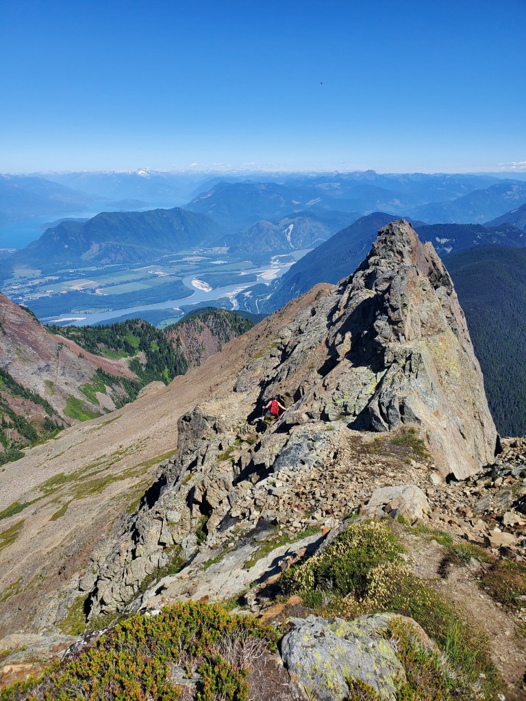 For me, the crux of the day was not the drive, but the final climb up the tallest rock at the top of Lady Peak. From the few trip reports I found, it doesn’t sound like most people include this part in their ascent, but it definitely looked like the tallest point on the mountain. A local I ran into on Cheam also agreed that the tall, narrow rock on Lady is the true peak.