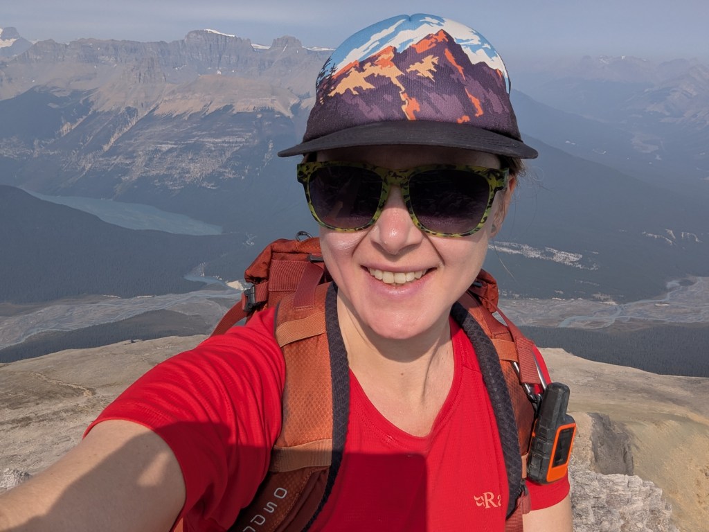 I made it back to the parking lot in 11 hrs and 20 min. By this time Mistaya Canyon trail was bustling with tourists, wearing sandals and cute, clean outfits. They helpfully assured me that I was almost back at the parking lot – I must have looked as tired as I felt! Mount Sarbach is a fantastic scramble and I would certainly recommend it to a friend that is comfortable on difficult, exposed terrain. Maybe I can even persuade them to come back with me on a less smoky day!