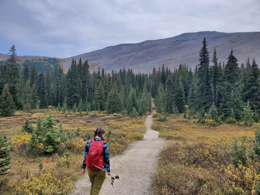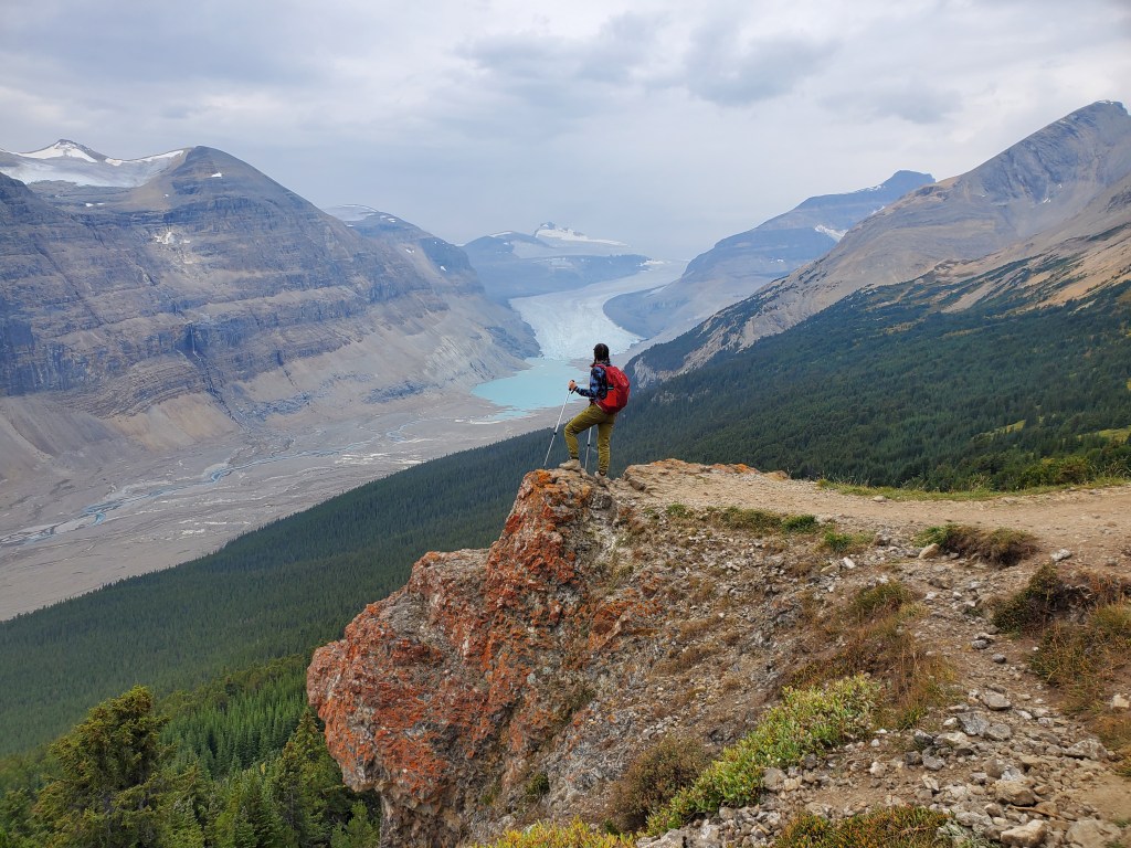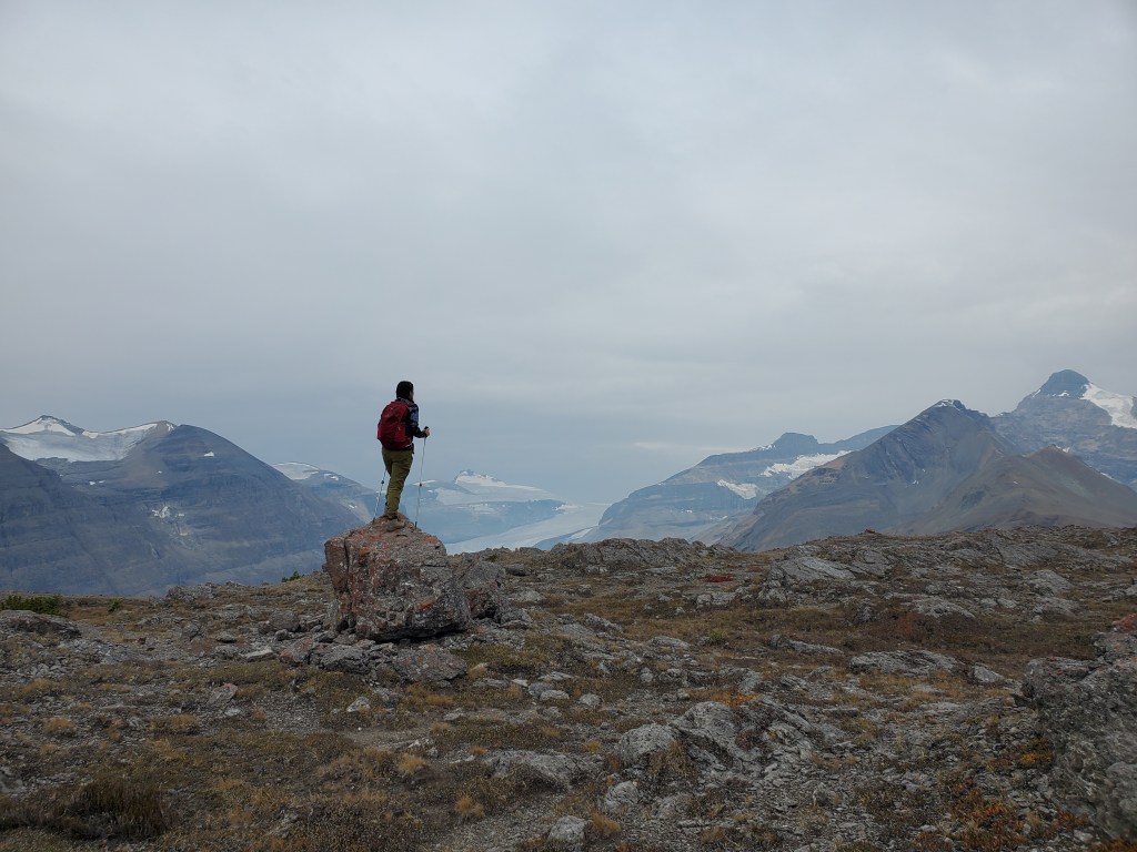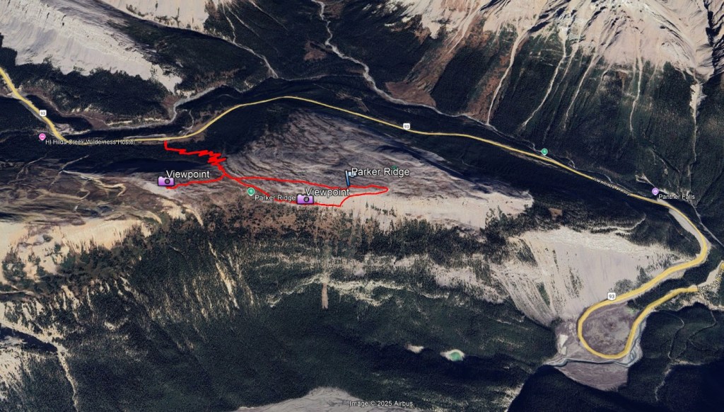 Parker Ridge is a fun little hike with big mountain views. The ridge stands above the big bend in the Icefields Parkway. What looks like a decent-sized mountain from the south is only a gentle hill when tackled from its north side. Aside from an optional loop we added, this is a well-maintained Parks Canada trail. The parking lot tends to fill up, but it has a good turn-over.