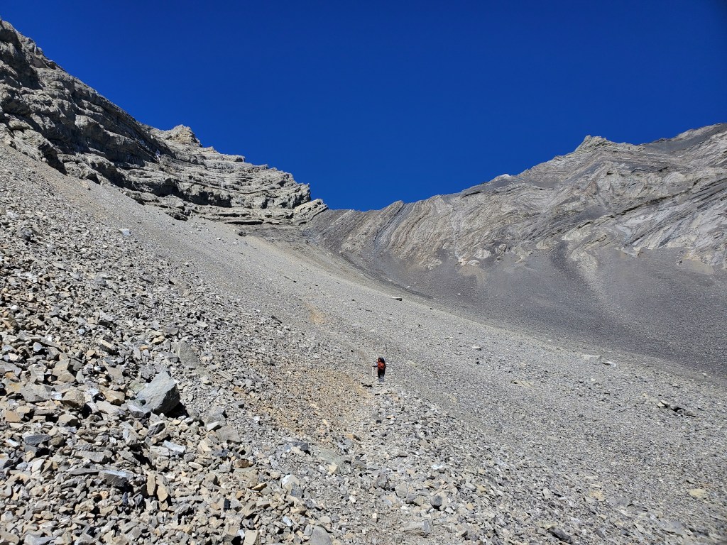 As an aside, you’ve probably heard of The Sharp End Podcast, a podcast aimed at minimizing mountaineering accidents by sharing stories of past incidents, but you may not know there is an episode featuring a 2020 accident in Alberta, and on this peak no less. Give it a listen if you’re interested: Broken Neck on Mount Rae