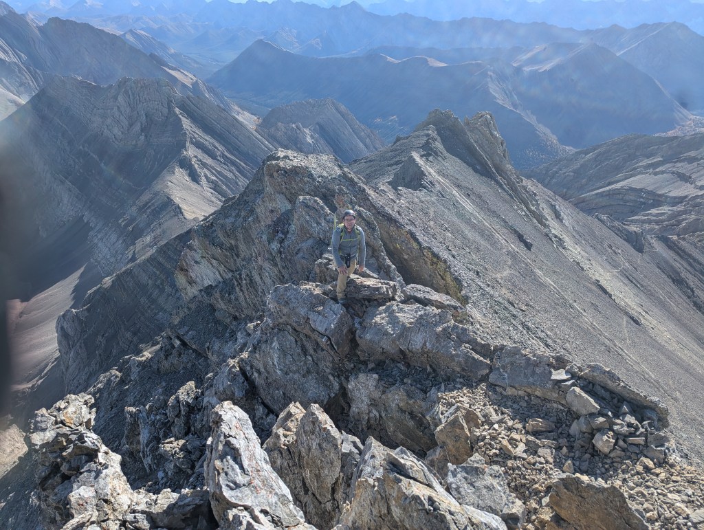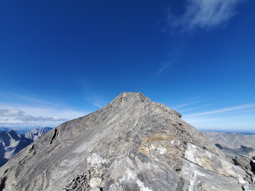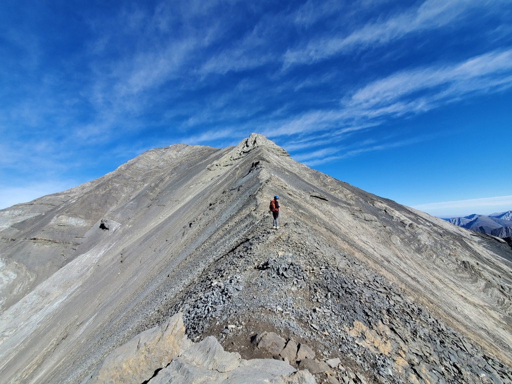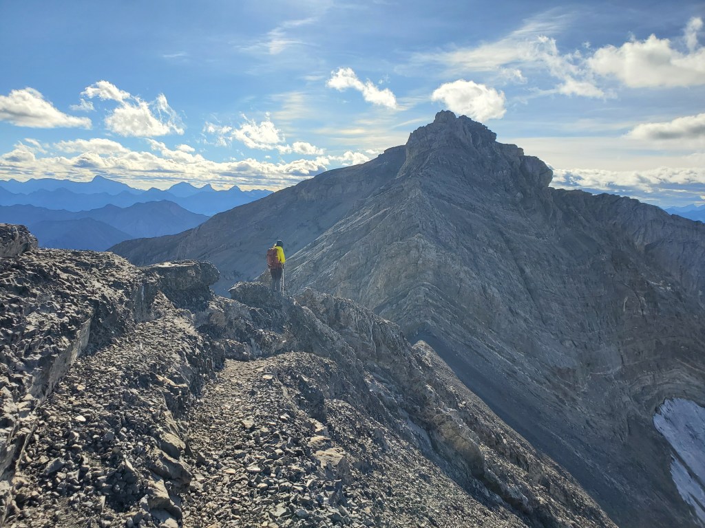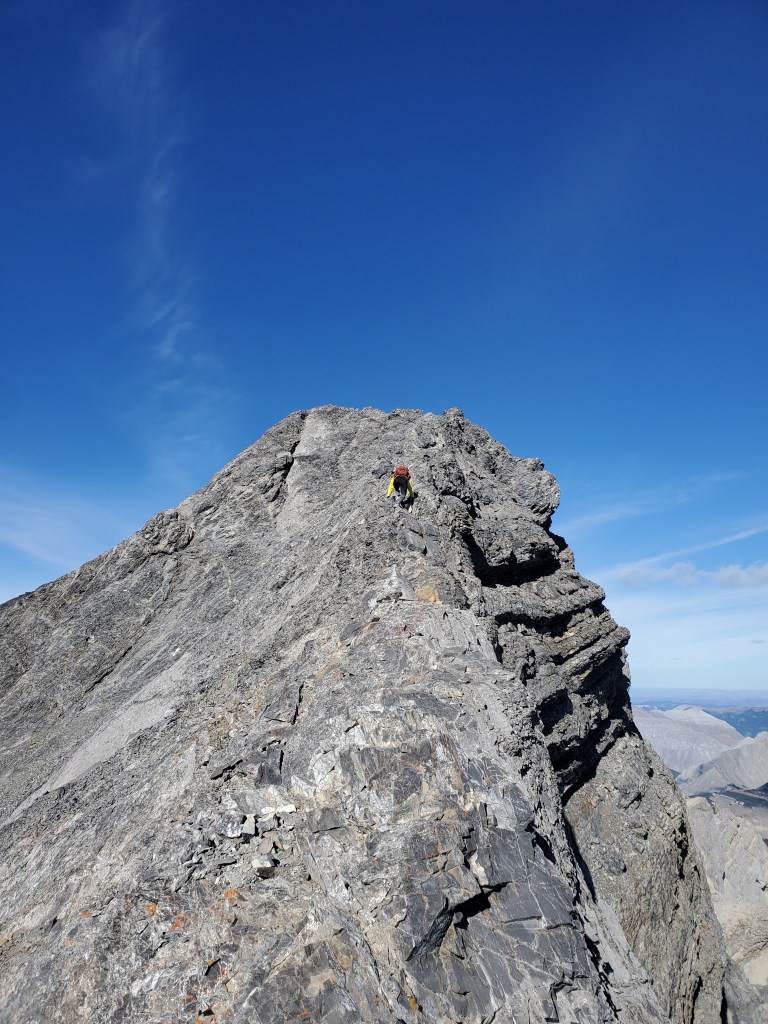 Notes: Most of the ridge can be bypassed, but I can’t verify that the final portion of the bypass route is still a good line. Keeping to the summit ridge for the final portion is difficult scrambling. Kananaskis Conservation Pass required.